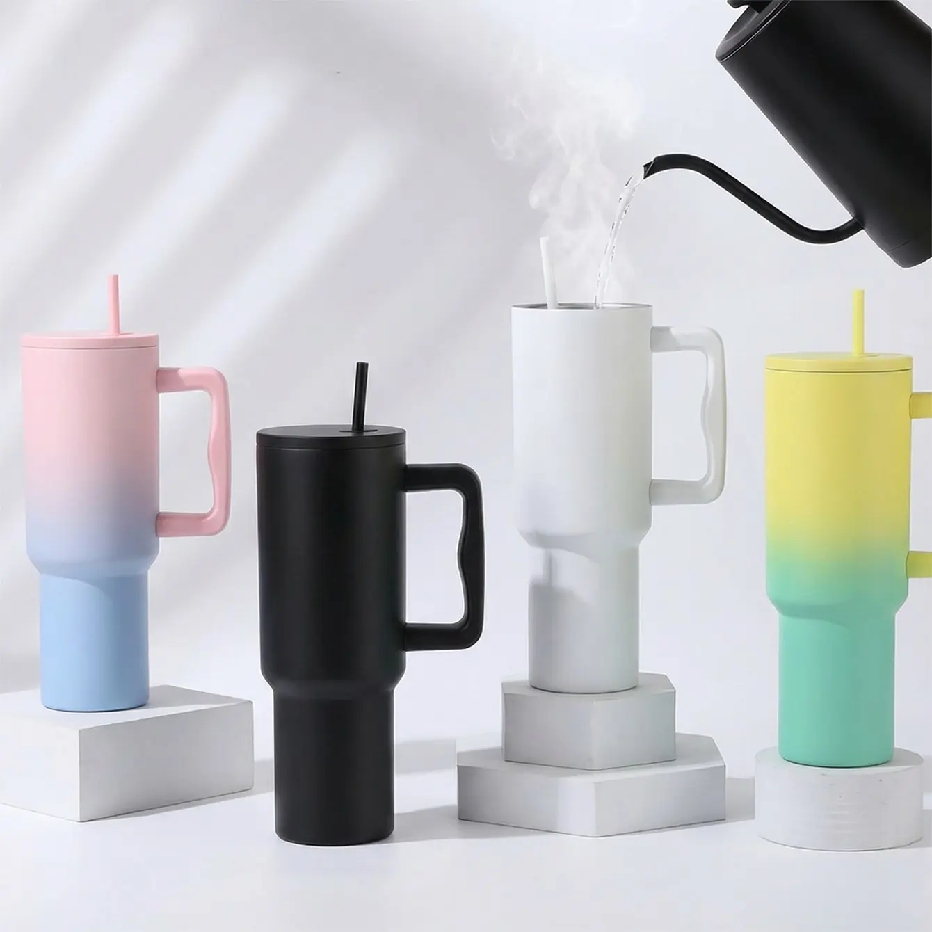 40oz Stainless Steel Insulated Travel Mug, Leak-Proof Lid, Straw, Handle, 304 Stainless Steel, Multiple Colors Available