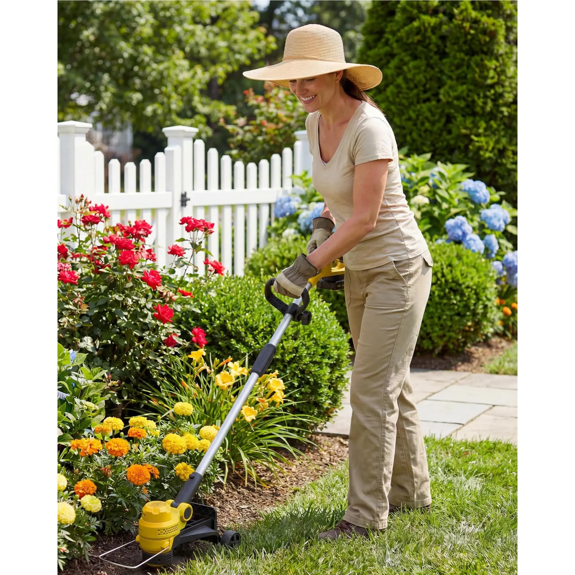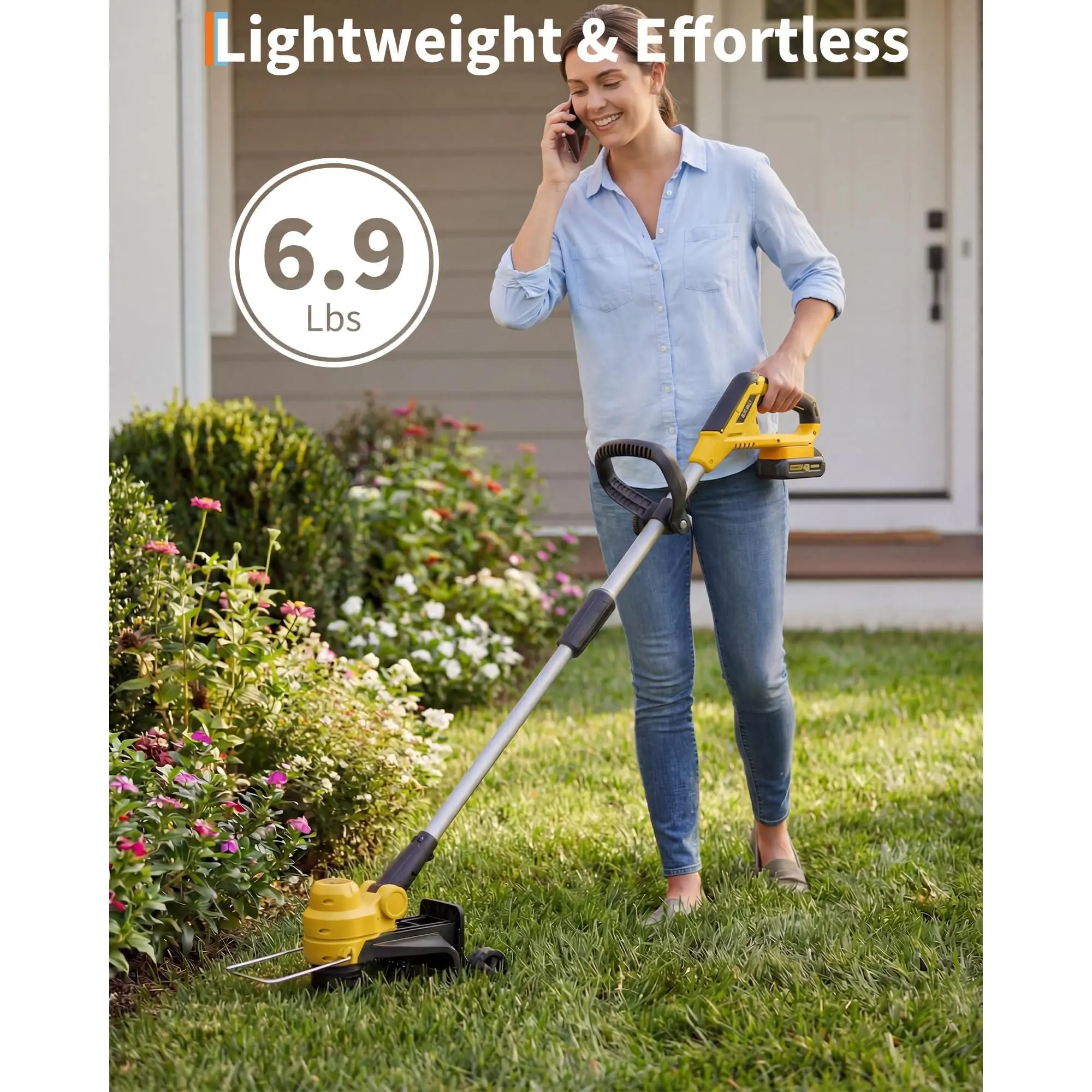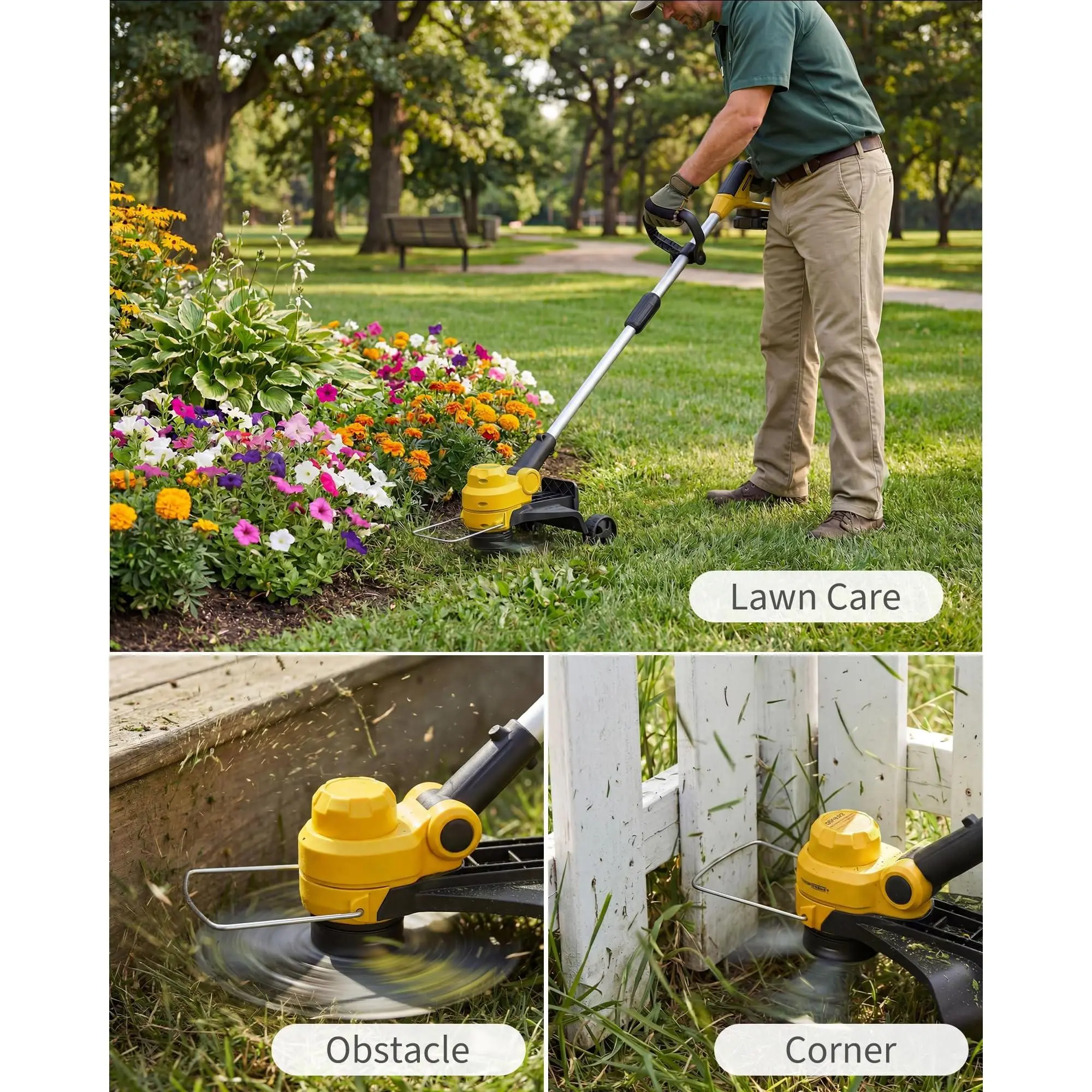 2-in-1 Trimmer & Edger with Quick Conversion: This cordless string trimmer easily converts from trimming to edging mode, featuring an adjustable cutting head and built-in guide wheel for clean, professional-looking lawn edges and precise trimming around obstacles.