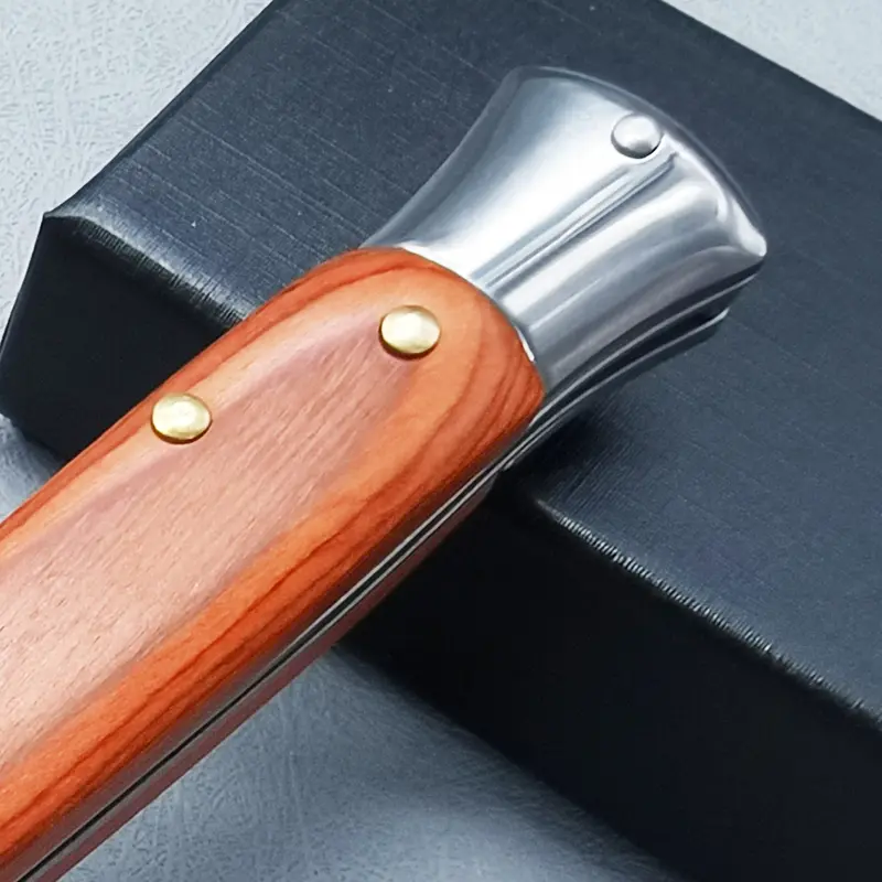 Wooden handle and carbon steel folding blade, EDC pocket knife. Comes with pocket clip, comfortable handle, suitable for outdoor camping, barbecue, hiking and other purposes, men's holiday gift, Christmas gift