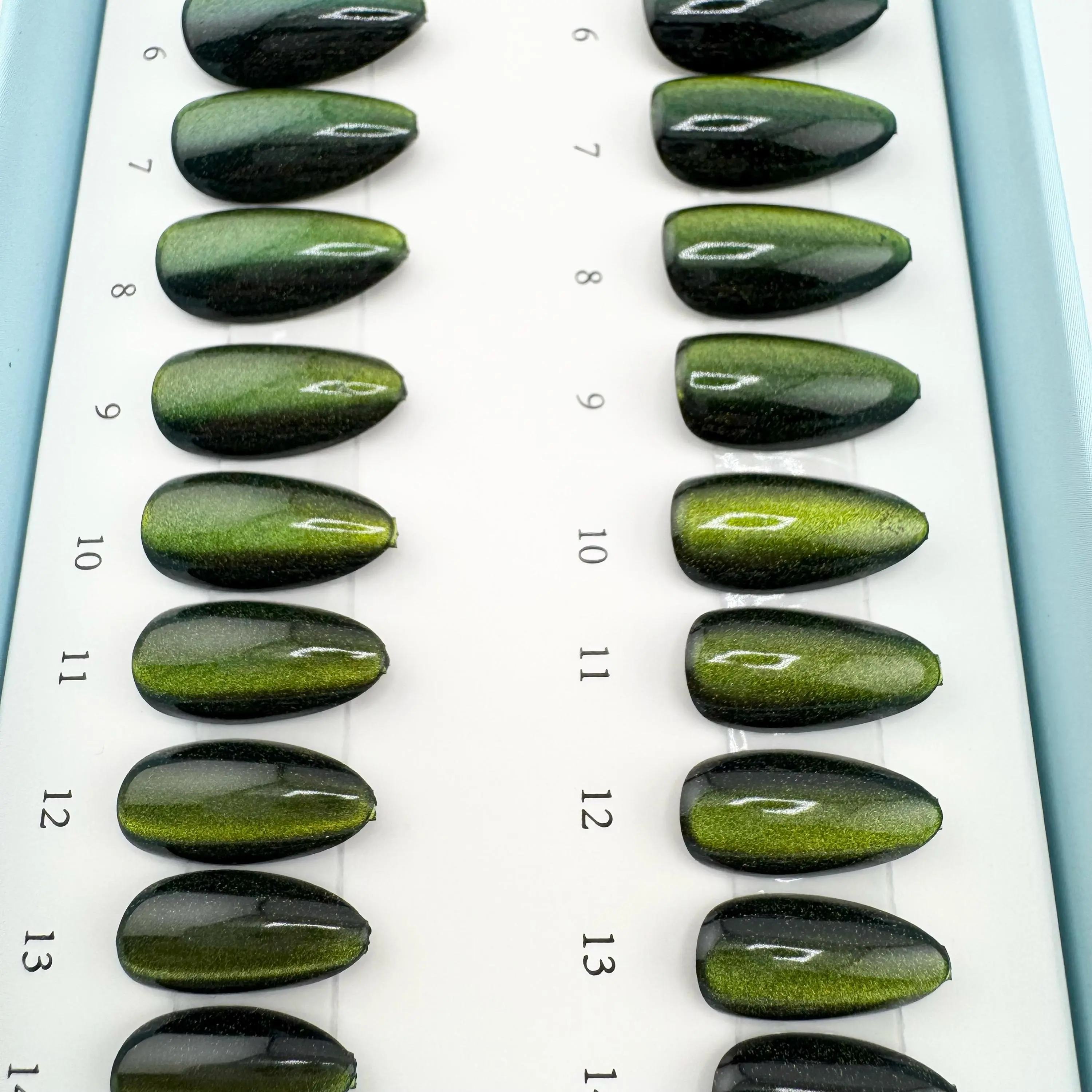 Green Cat Eye Press On Nails – Reusable Luxury Almond Shape
