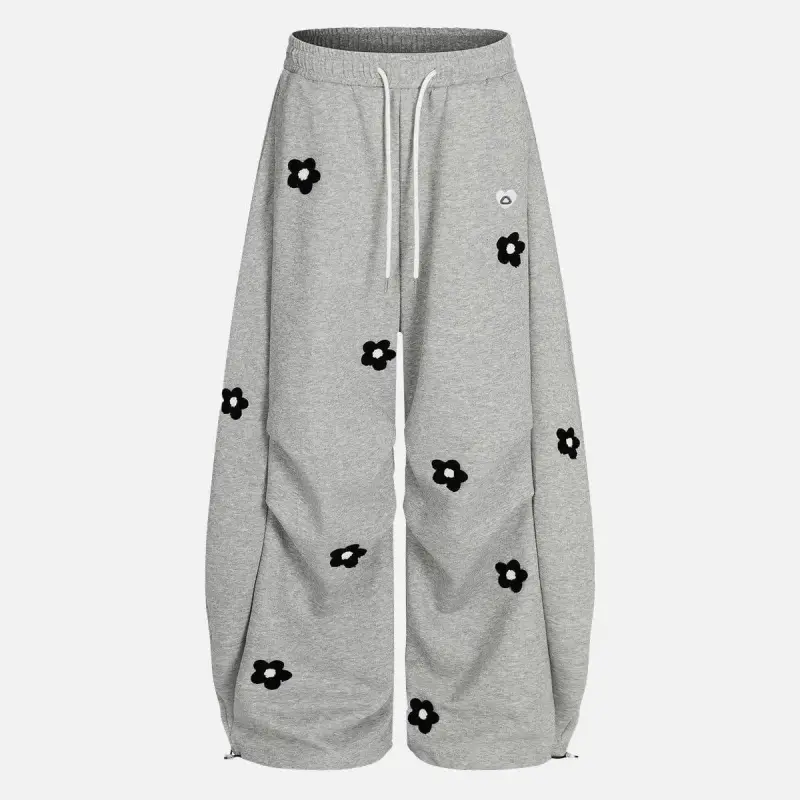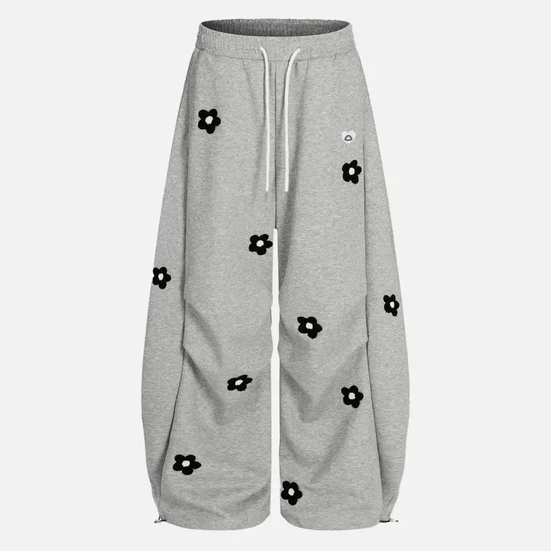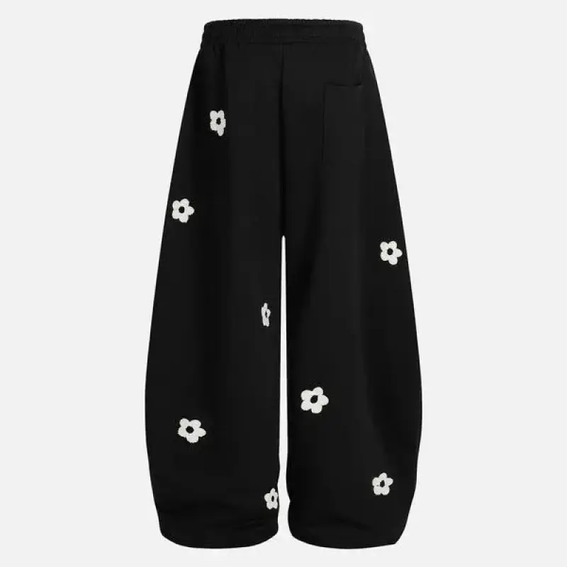 Unisex Floral Towel Embroidery Baggy Barrel Sweatpants