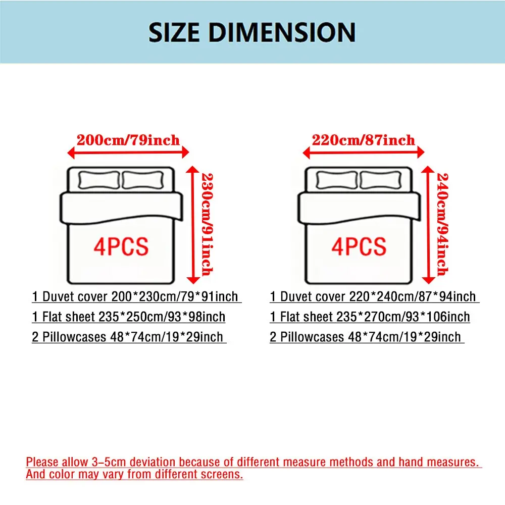 【Complete Set】: Includes duvet cover, sheet, and two pillowcases, providing everything you need for a cozy bed.