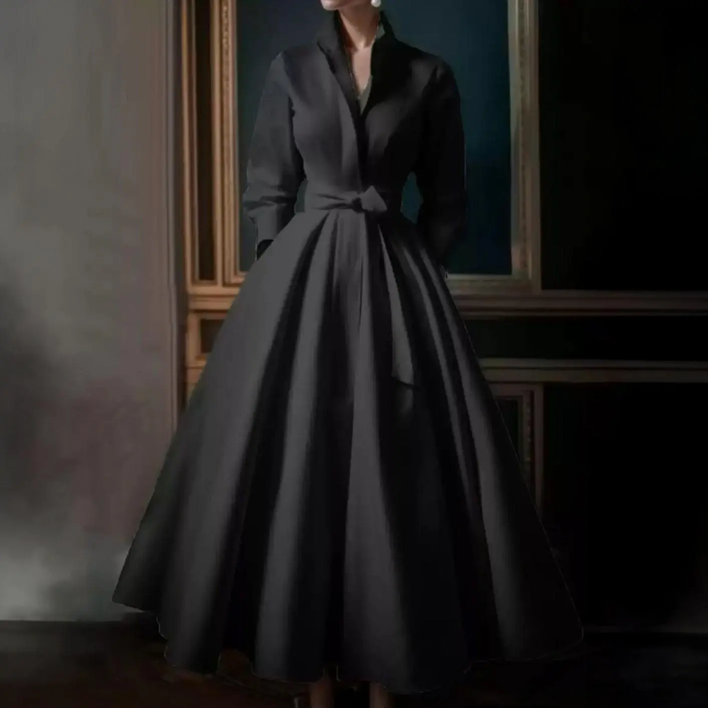 French Light Wedding Dress for Bride, Retro Minimalist Forest Style, Stand Collar, Long Style, Elegant V-Neck Going-Away Evening Dress for Women