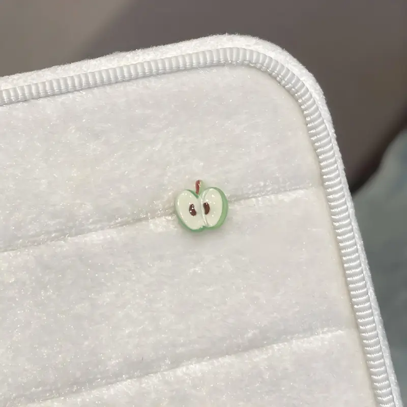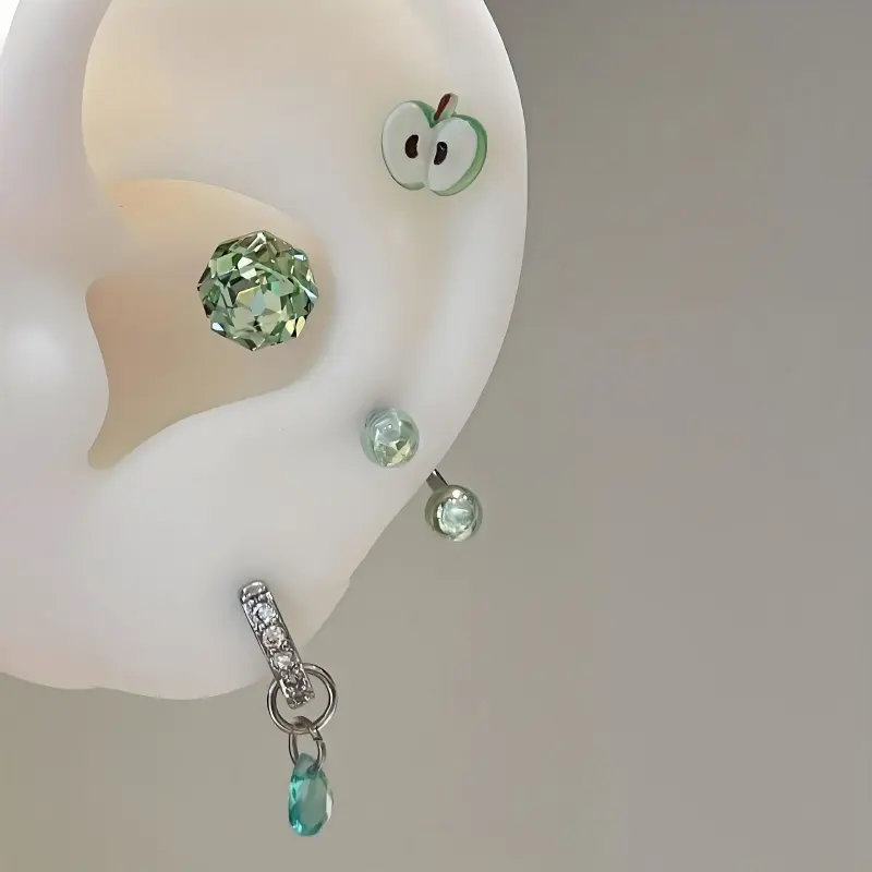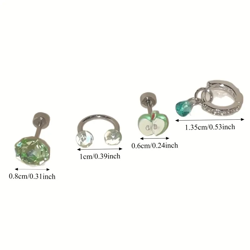 Set of 4 single-sided fashionable green apple stud earrings for women, exquisite and versatile ear cuffs, sweet earrings, bubble earrings, high-end niche stud earrings, suitable for daily casual wear, and as a birthday or holiday gift