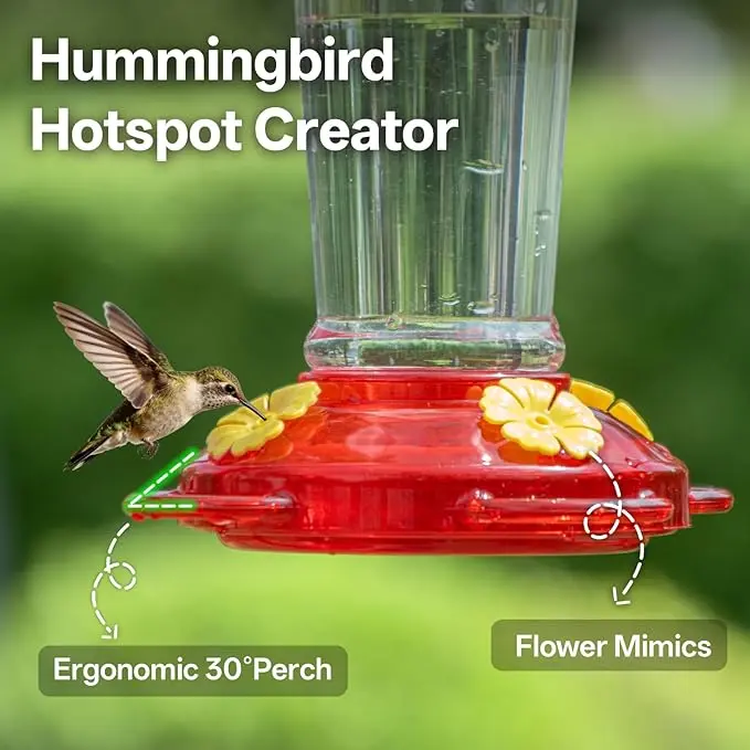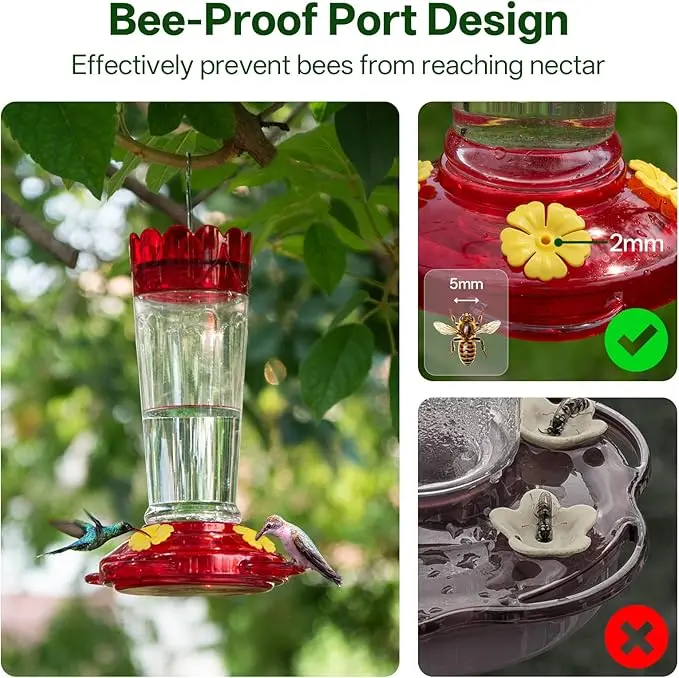 Our feeders are crafted to be ant and bee proof. This feature ensures that only hummingbirds enjoy the nectar. The design prevents unwanted visitors, maintaining a clean and efficient feeding area. Perfect for those who want to focus on attracting hummingbirds without distractions.