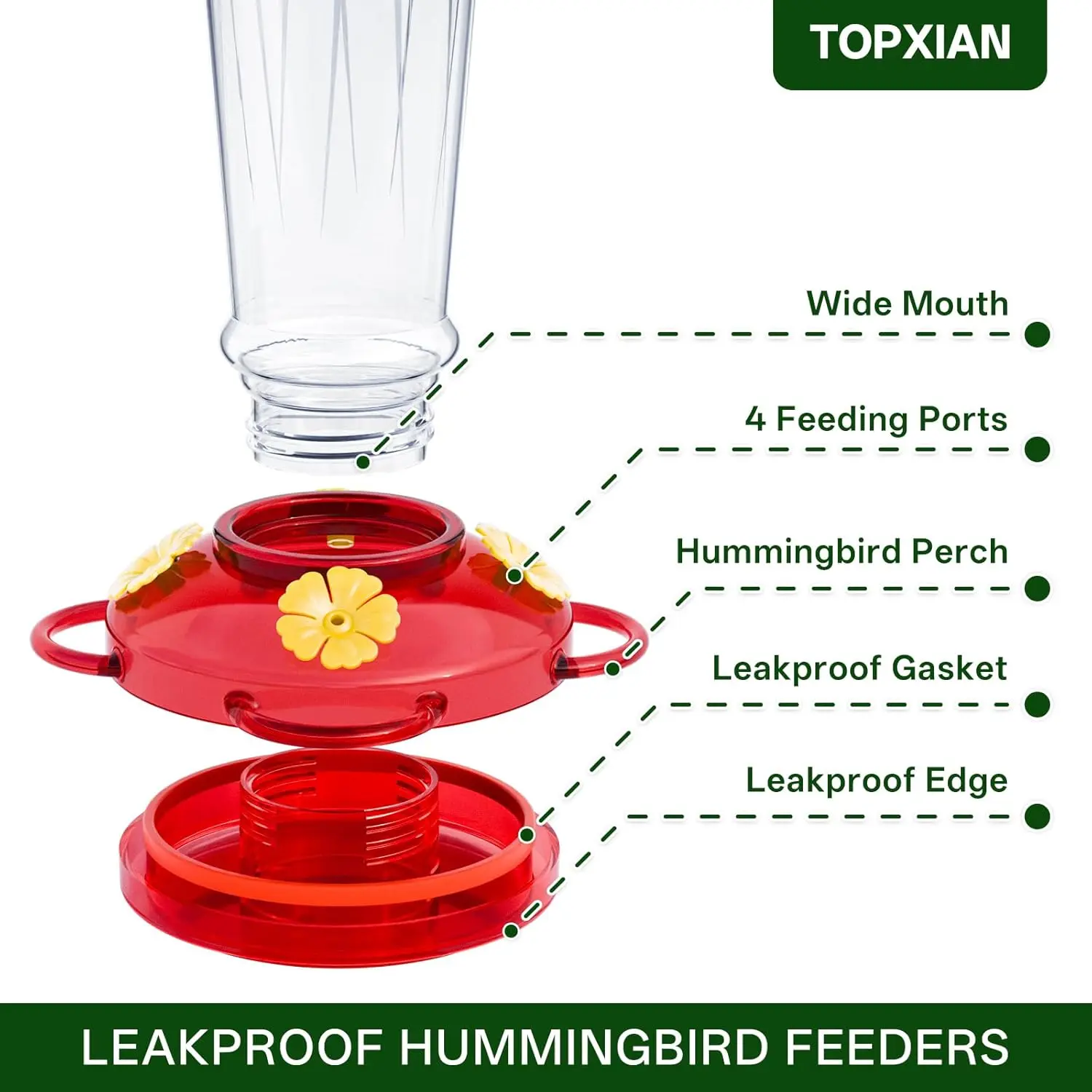 Elevate your outdoor space with our 2-Pack Plastic Hummingbird Feeder. Each feeder holds 14 OZ of nectar, perfect for attracting hummingbirds. Designed with 4 feeding ports and perches, it ensures ample feeding opportunities. The leak-proof design keeps your setup tidy. Ideal for bird lovers and gifts for mom. Hang it outdoors effortlessly.