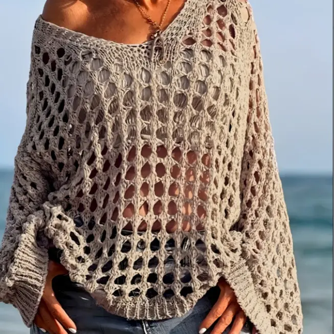 Premium Airy Fabric: Crafted from high-quality, lightweight knit material, this open-weave sweater offers ultimate breathability and a soft touch against the skin. Perfect for staying cool and stylish during breezy summer nights or sunny beach days.