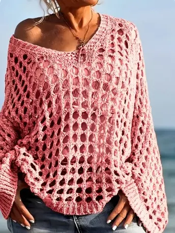 Chic Hollow-Out Design: Featuring a unique large-scale crochet pattern and a trendy "fishnet" look, this pullover adds a touch of effortless boho-chic to any outfit. The ribbed cuffs and hem provide a structured yet relaxed silhouette.