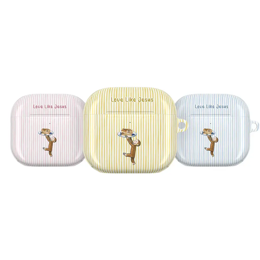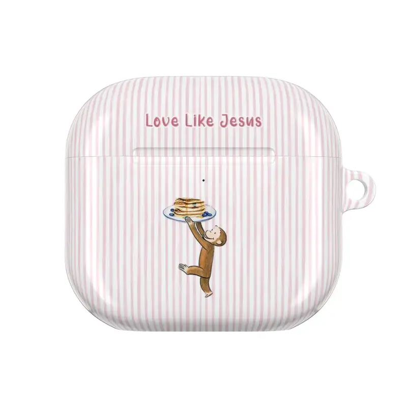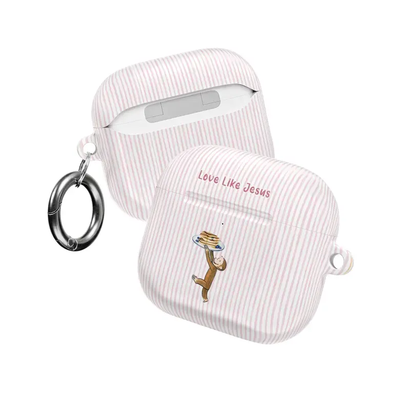 Curious George AirPods Case – Love Like Jesus Christian Quote Cover, Cute Monkey Pastel Stripe AirPods Pro/Pro 2, AirPods 1/2/3/4 Cases – Faith Inspired Gift Idea