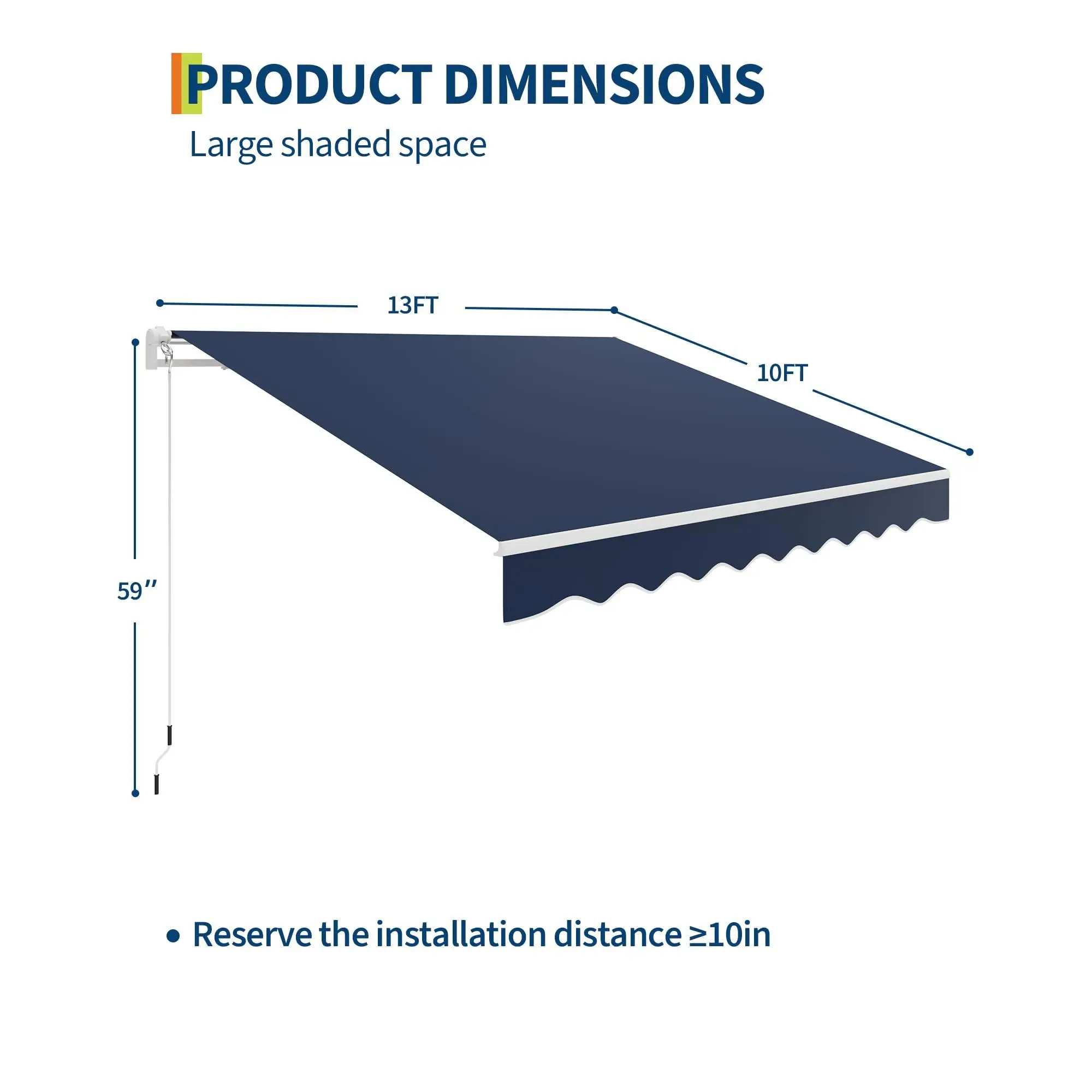 Large Shading Area for Outdoor Comfort: The manual retractable awning provides a generous coverage area of 13x10 ft, effectively shading up to 130 sq.ft. Perfect for creating a cool, protected outdoor living space with retractable awnings for deck, patio, or porch.