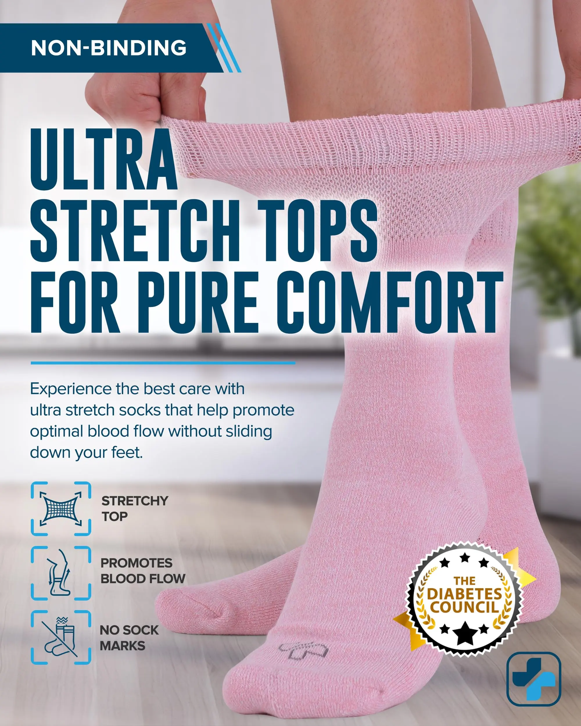 Soft Relief for Swollen Feet - Doctor’s Select diabetic non binding socks women have a loose top design that helps to promote good blood flow without leaving unsightly sock marks, providing all-day comfort.