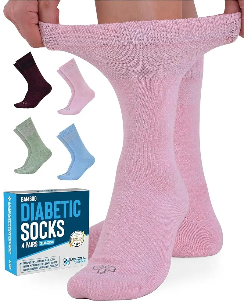 Doctor's Select Bamboo Viscose Crew Socks for Women - Diabetic Comfort, Size 6-9