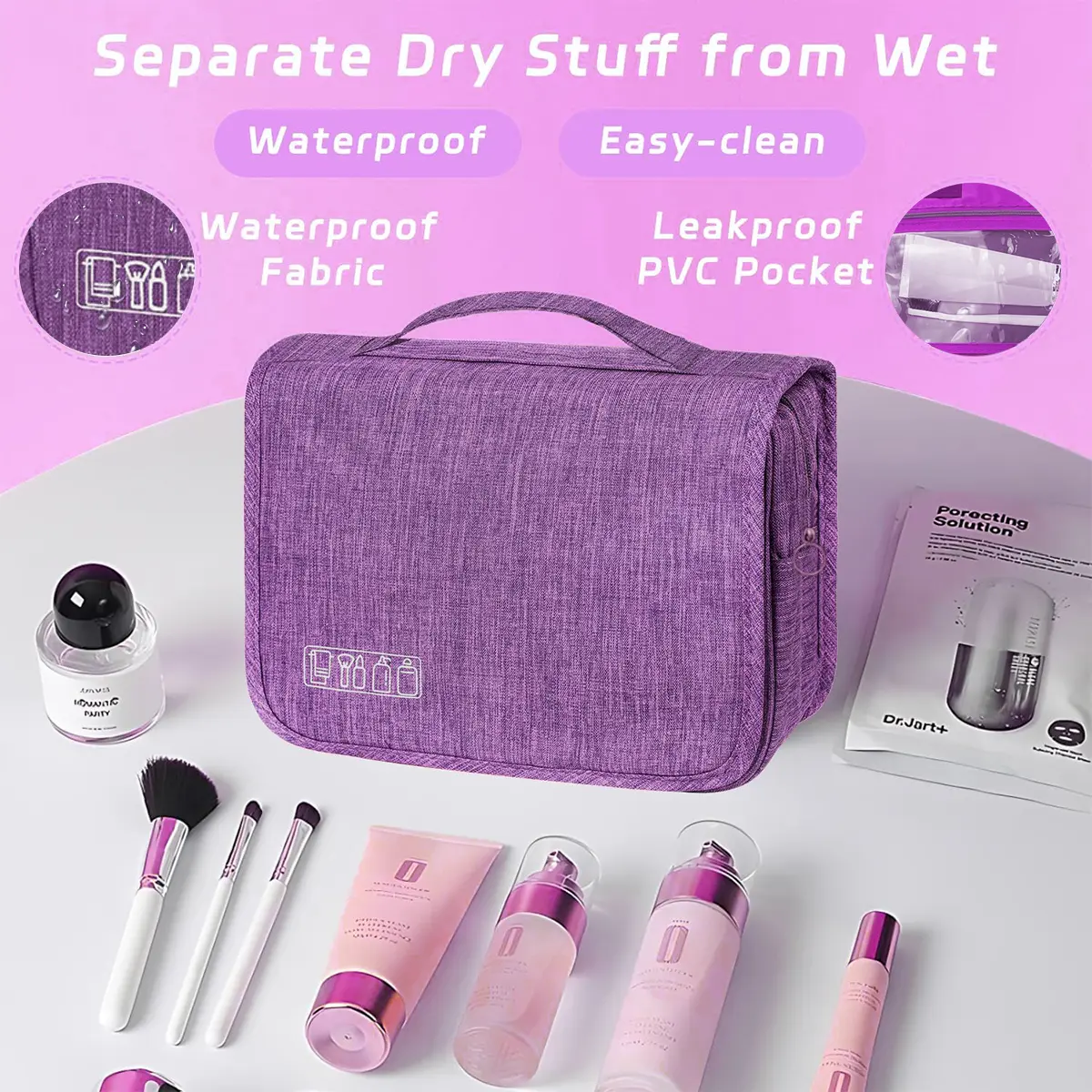 Waterproof Foldable Toiletry Bag, 1-Count Multifunctional Travel Cosmetic Organizer, Large-Capacity Portable Hanging Toiletry Bag for Business Trips, Vacations, Gym and Camping, Multifunctional Toiletry Bag