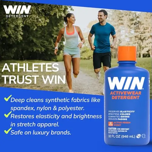 THE BEST SELLING ACTIVEWEAR DETERGENT ON AMAZON. WIN is specially engineered to restore stretch fabrics, brighten colors, and remove workout odor from microfiber fabrics, synthetic fabrics, and technical fabrics. It is available in fragrance free detergent or with a light fresh scent.