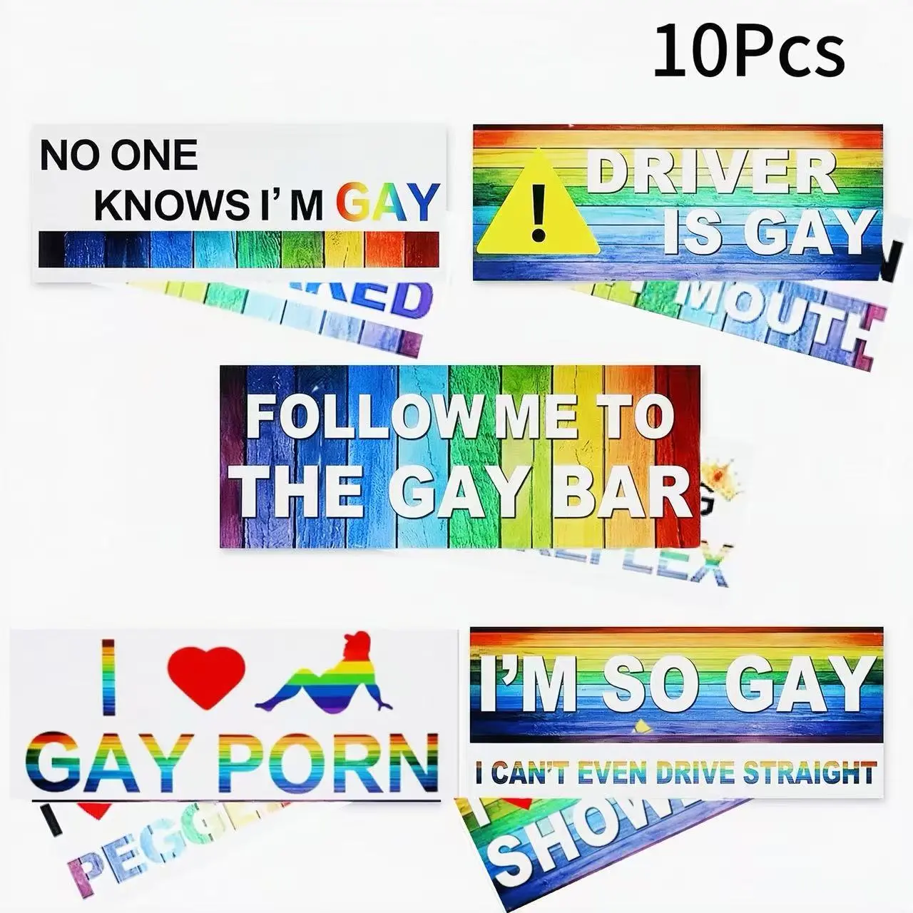 10 Pcs Magnetic LGBT Rainbow Bumper Prank Stickers, Funny Colorful Car Decals for Truck, Vehicle, Luggage, Window & Refrigerator