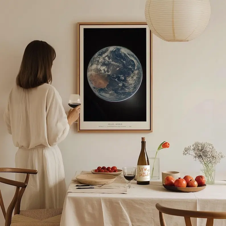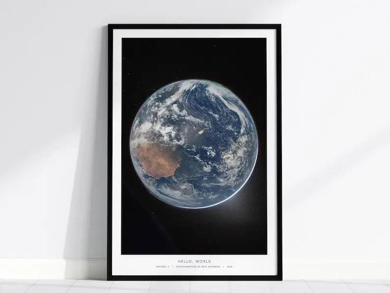 Hello World NASA Poster, Artemis II Earth Photo: Blue Marble Print, Reid Wiseman Space Art, NASA Gift, Planet Earth Poster