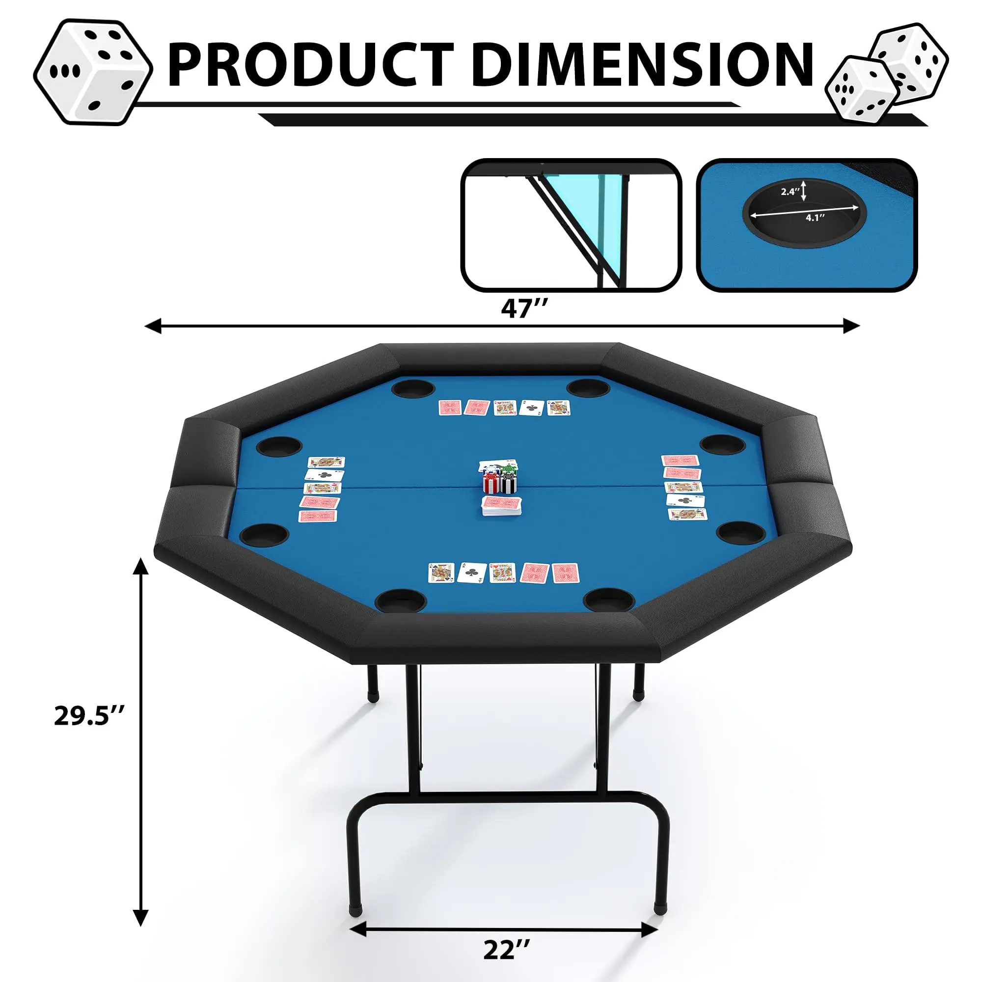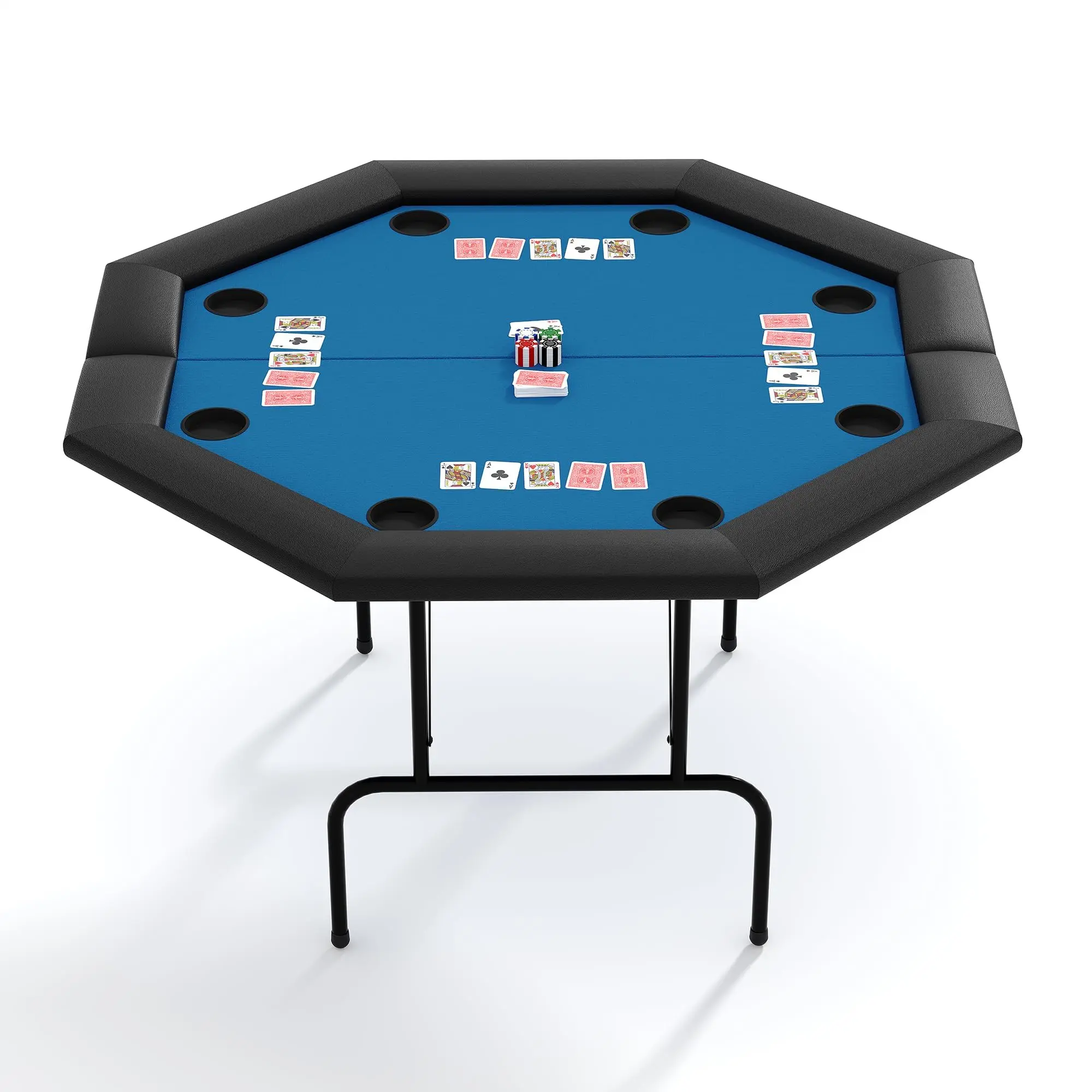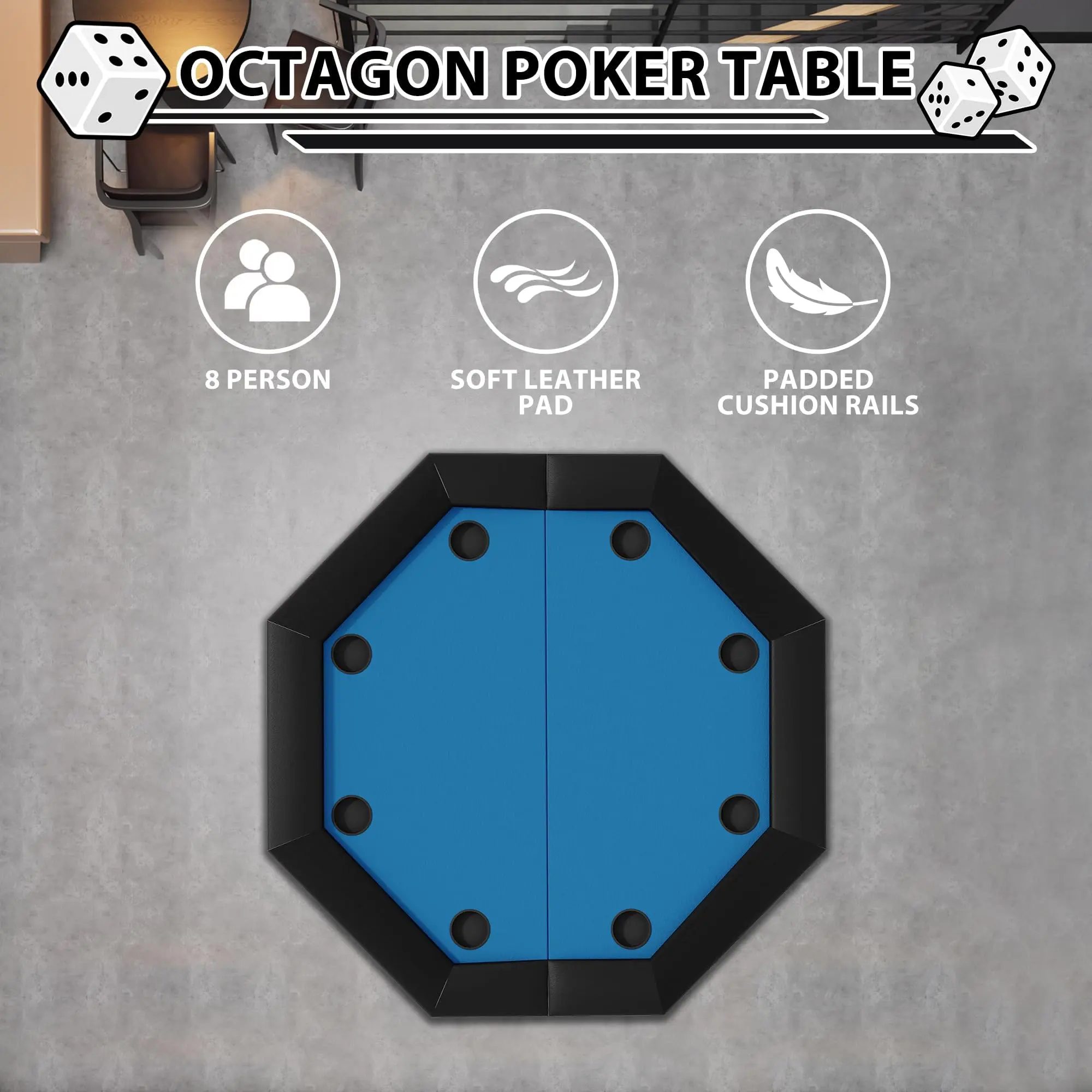 · SPACIOUS 8-PERSON GAMING SURFACE:Designed with an expansive octagonal layout, this premium poker table comfortably seats up to eight players, making it ideal for lively game nights or friendly tournaments. Its generous playing area ensures ample space for cards, chips, and hands, creating an engaging atmosphere perfect for social gatherings.