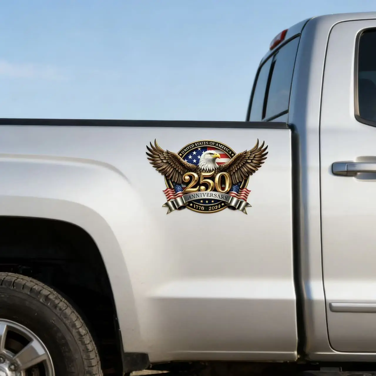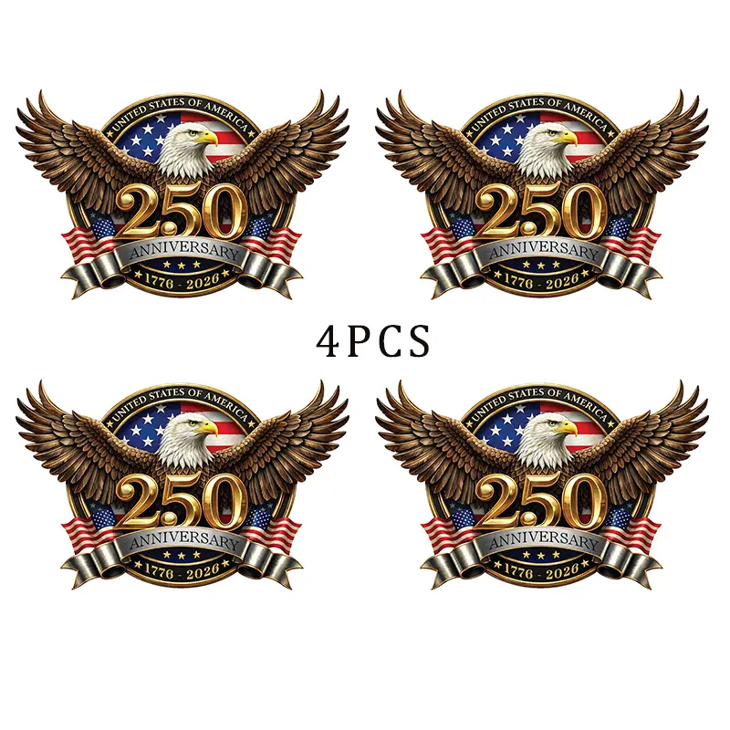 ✨ 4PCS USA 250th Anniversary Car Decal – Perfect for marking the historic milestone from 1776-2026. These decals feature classic American symbols, adding a festive and patriotic touch to your vehicle. The striking design remains visually appealing from various distances. Ideal for Independence Day celebrations, these stickers make your car stand out.