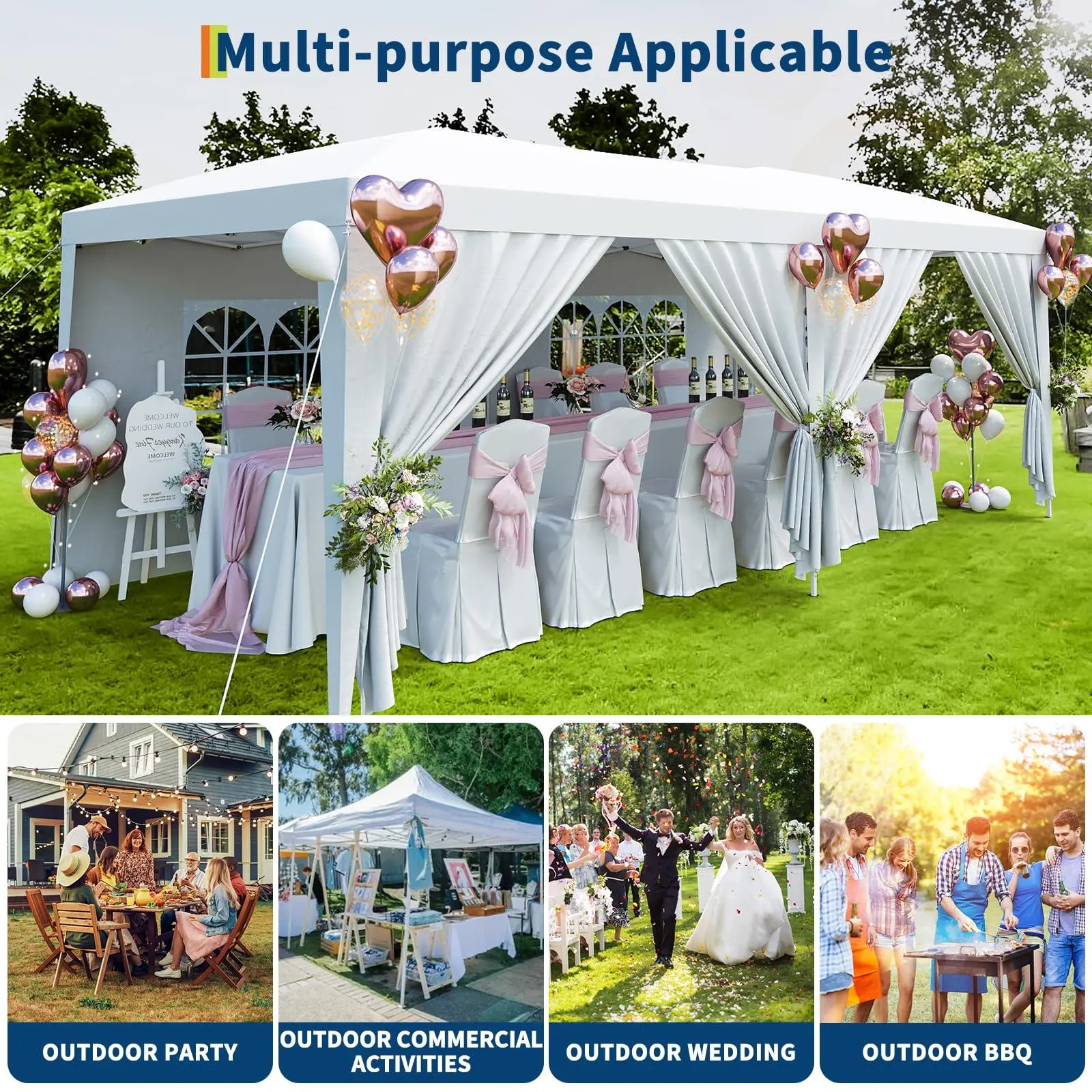 【Premium Tent and Side Walls】10x20 party tent is made of 210D high-quality Oxford cloth with two layers of PU coating, UPF 50+, which can block 99% of UV rays and rain. The seams are fully sealed to prevent water leakage and are 100% waterproof. The waterproof pressure is 2.1psi, while the waterproof pressure of ordinary tents is only 1.1psi. 6 PU coated side walls can be disassembled and matched at will, suitable for different occasions