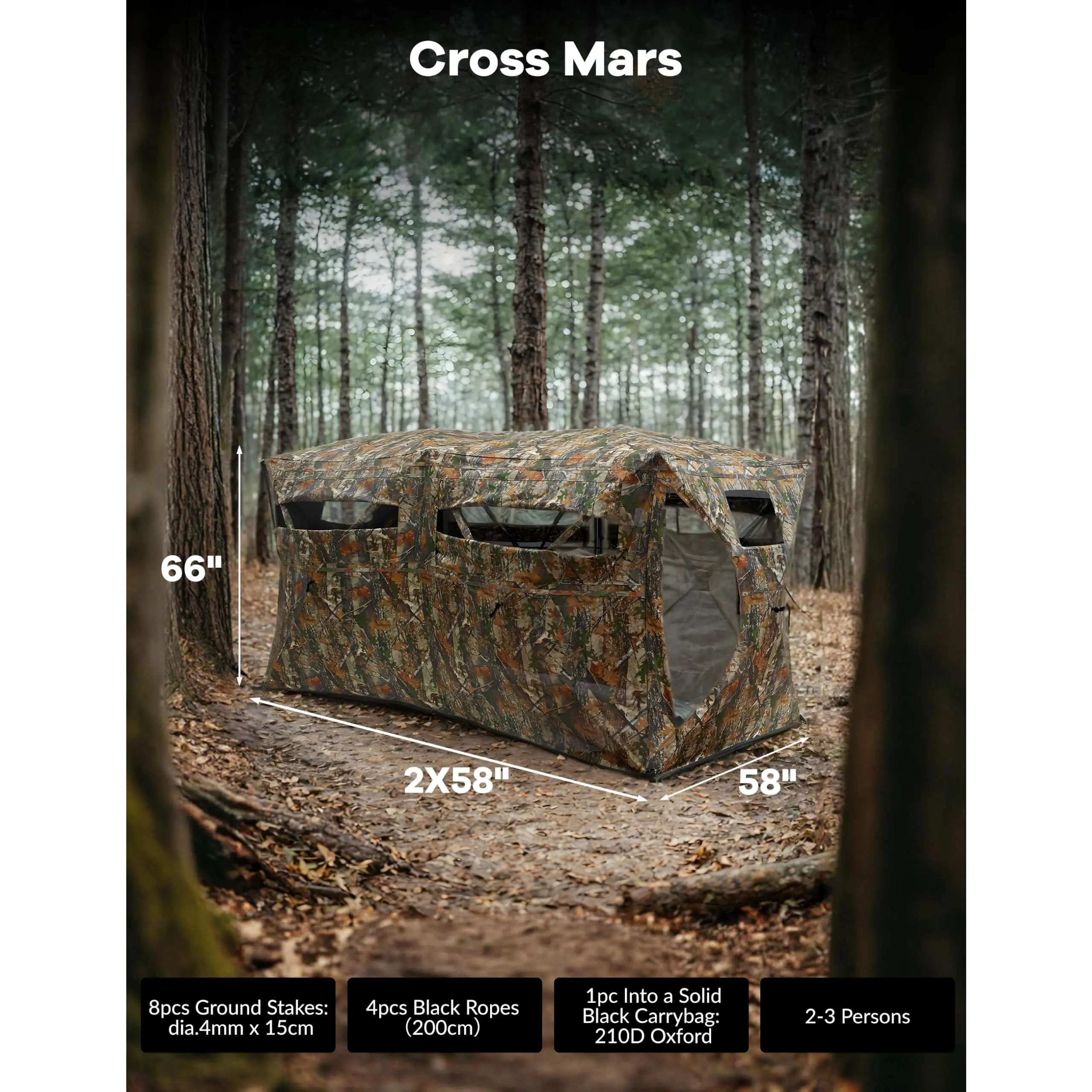 [Spacious Space] With dimensions of 116"*58"*66"H, the interior design of the tent is spacious and can easily accommodate 3-4 people, providing you and your partners with a comfortable hunting environment and ensuring sufficient space for activities in the wild.