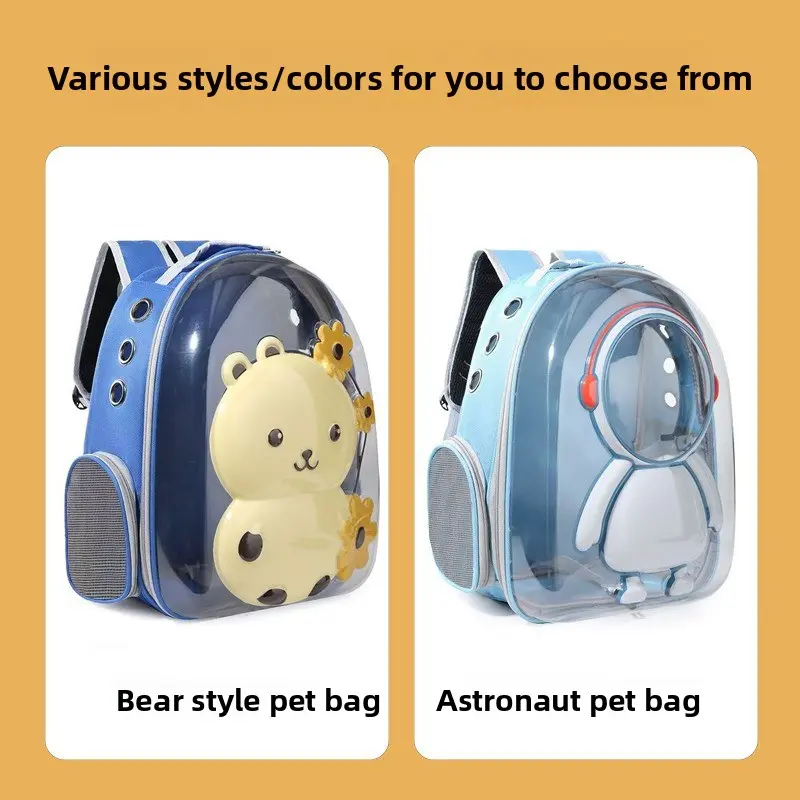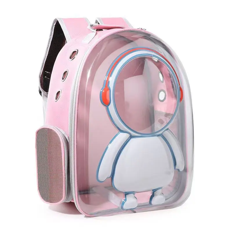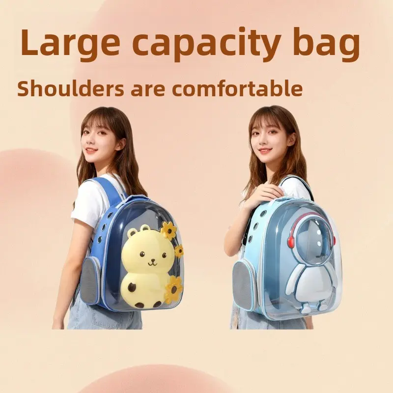 Pet Backpack Carrier - Breathable Transparent Space Capsule Astronaut Design with Mesh Pocket & Adjustable Straps, Portable Large Capacity Travel Backpack for Small Dogs & Cat