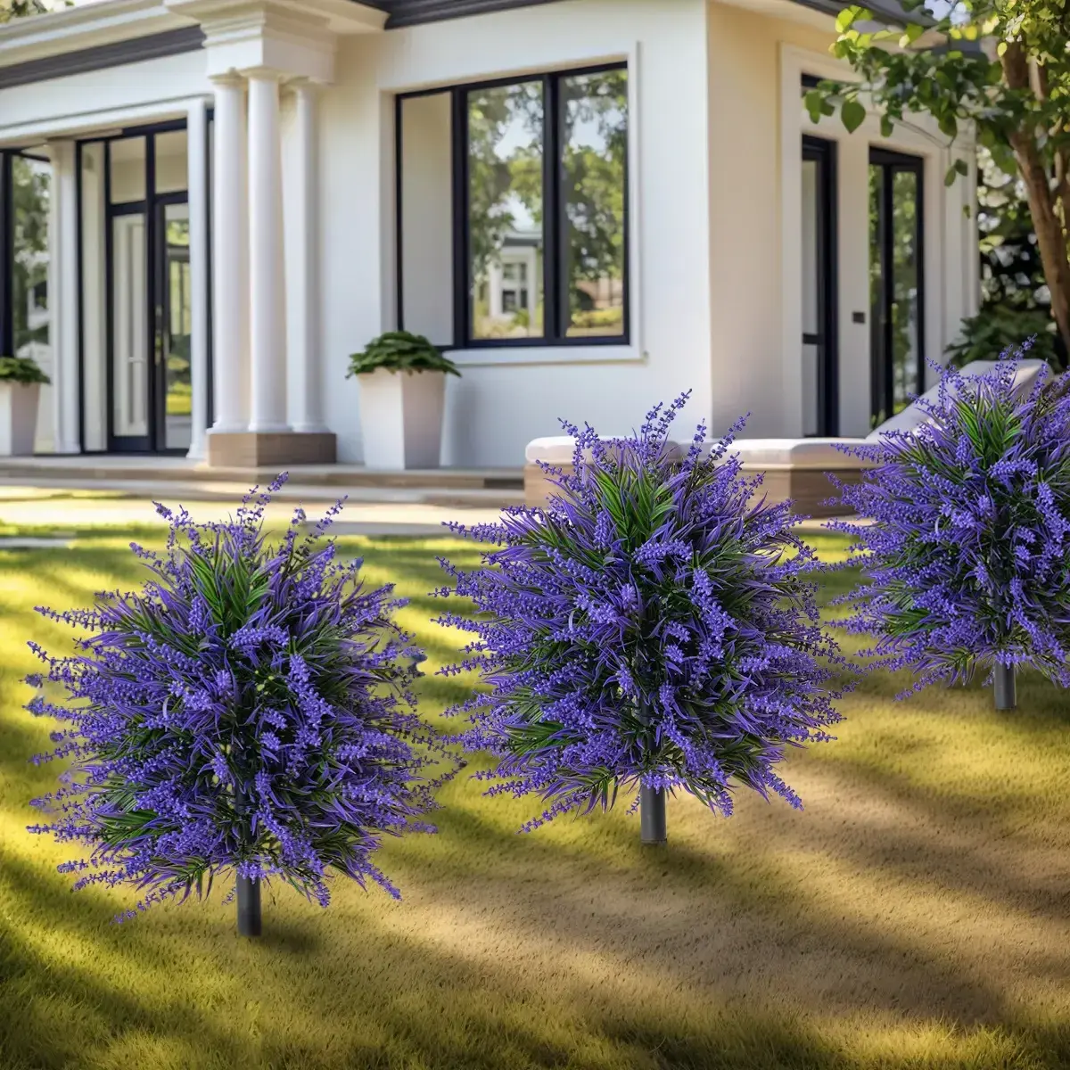 simulated lavender ground ball-shaped artificial shrub with ground spikes, UV-resistant fake evergreen tree, Lifelike Fake Plant, Fake Plant Decoration, suitable for indoor and outdoor decoration, as well as garden front porch decoration