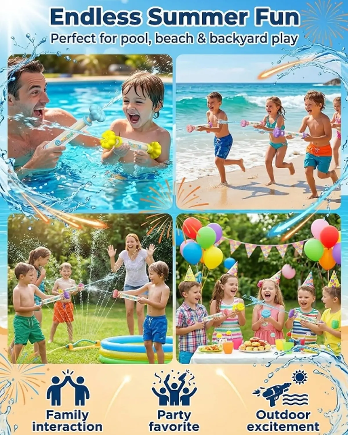 This unique water gun sprays water like fireworks, making it a standout toy for kids. Perfect for summer pool, backyard, beach, and birthday parties. It's a bulk small water blaster, ideal for outdoor games. Kids will love the creative twist on a classic squirt gun.