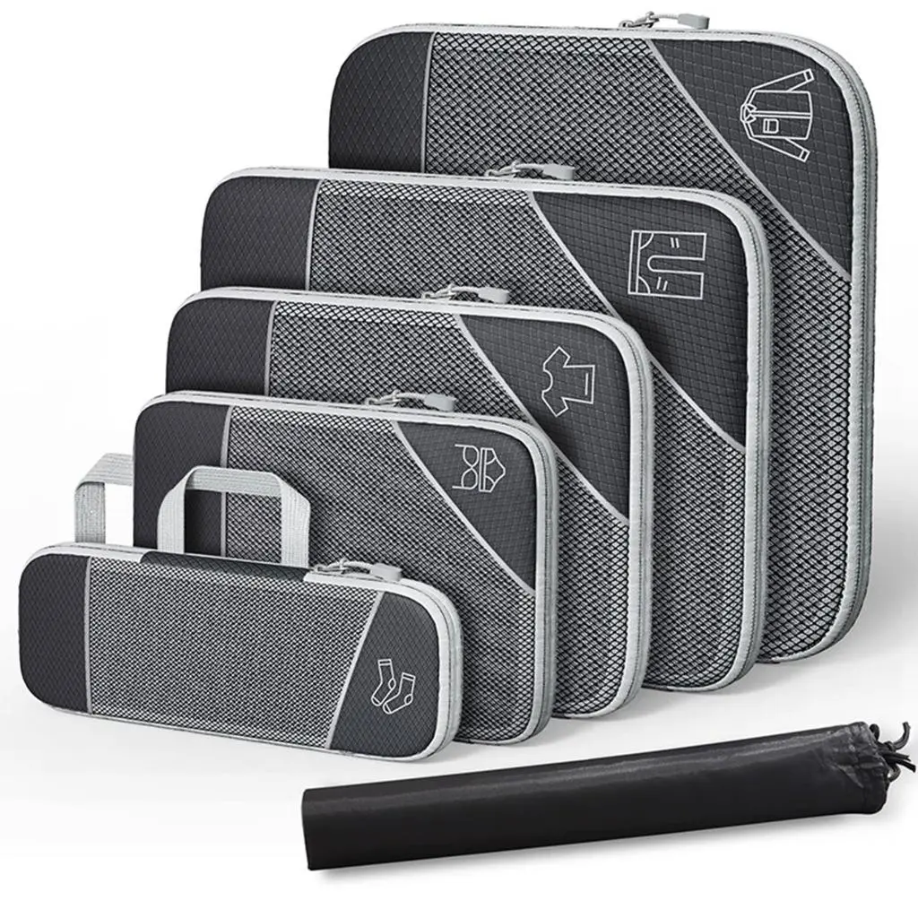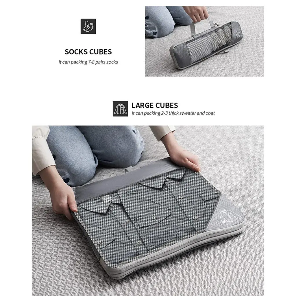 3/6PCS Compressed Packing Cubes Travel Storage Set with Shoe Bag Mesh Visual