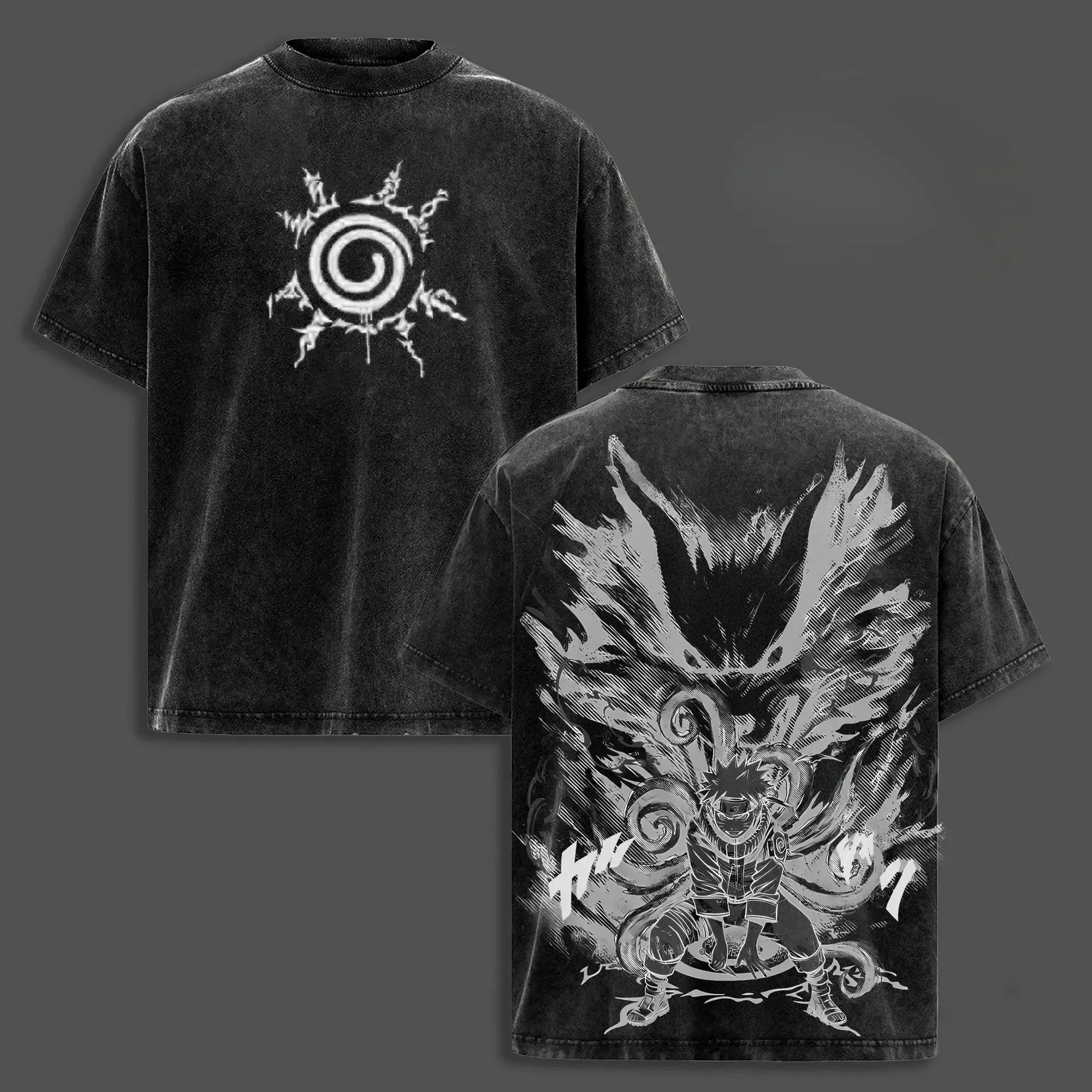 Naruto X Kurama Anime Double Printed Vintage Washed Unisex Oversize T-shirt for Anime Fans Heavyweight Cotton Top Menswear Gift Menswear Top Tshirt Streetwear Oversized Crewneck Tropical