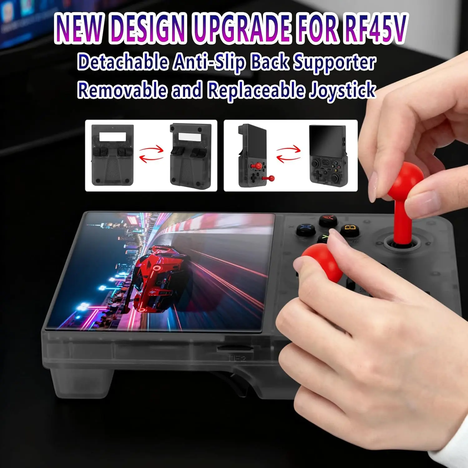 ·Precisely Engineered Console for Peak Enjoyment: the RF45V retro game console blends classic and contemporary aesthetics.Its manufacturing process embodies the concepts of "practicality" and "cutting-edge technology". An additional highlight is the detachable anti-slip stand integrated on the back cover, allowing users to place the device flat, thus freeing their hands and adding a newly upgraded detachable replaceable joystick for customers to use, enhancing the gaming experience. The RF45V game console has already won over countless gaming fans