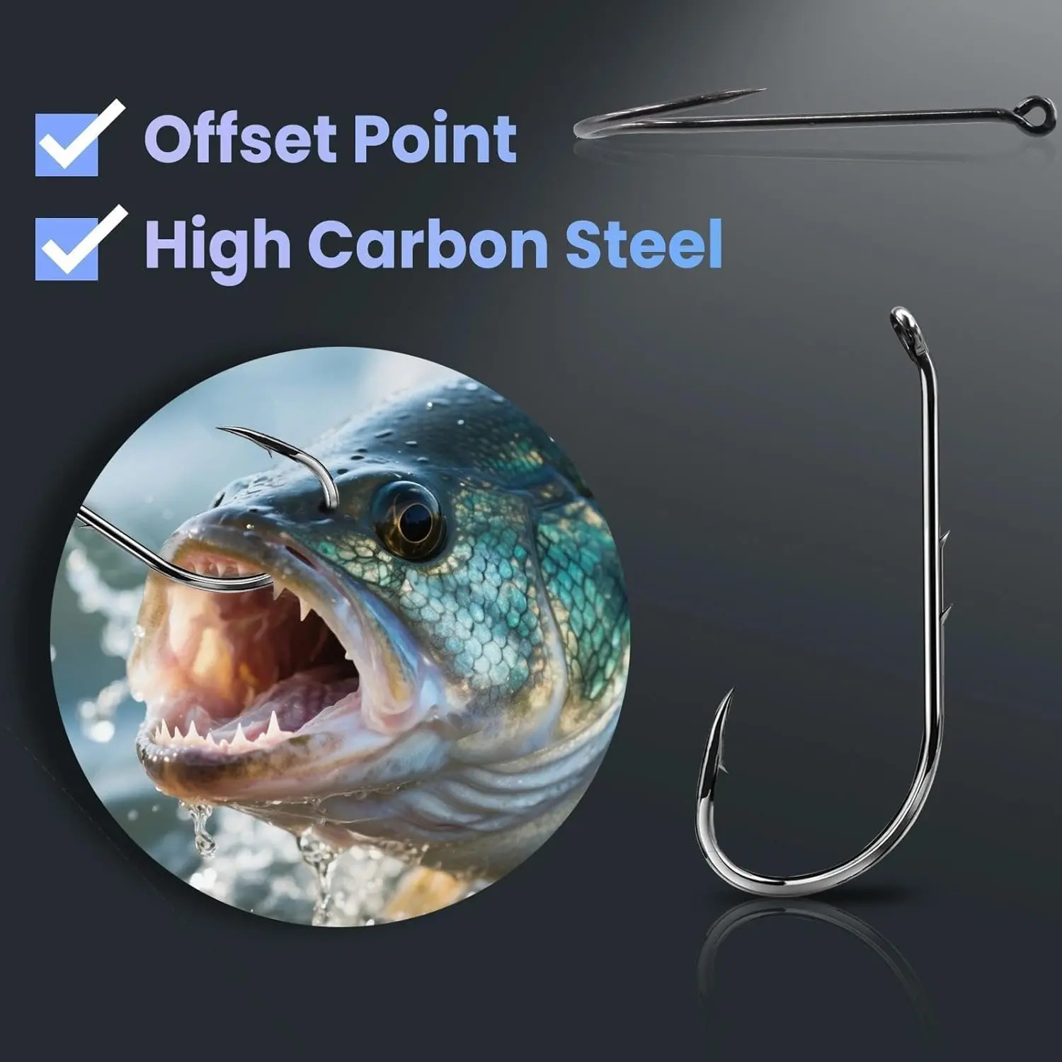 Baitholder Fishing Hooks 50Pcs Bait Holder Hooks Offset/Double Barbed/Long Shank/Down Eye for Soft Live Baits Saltwater