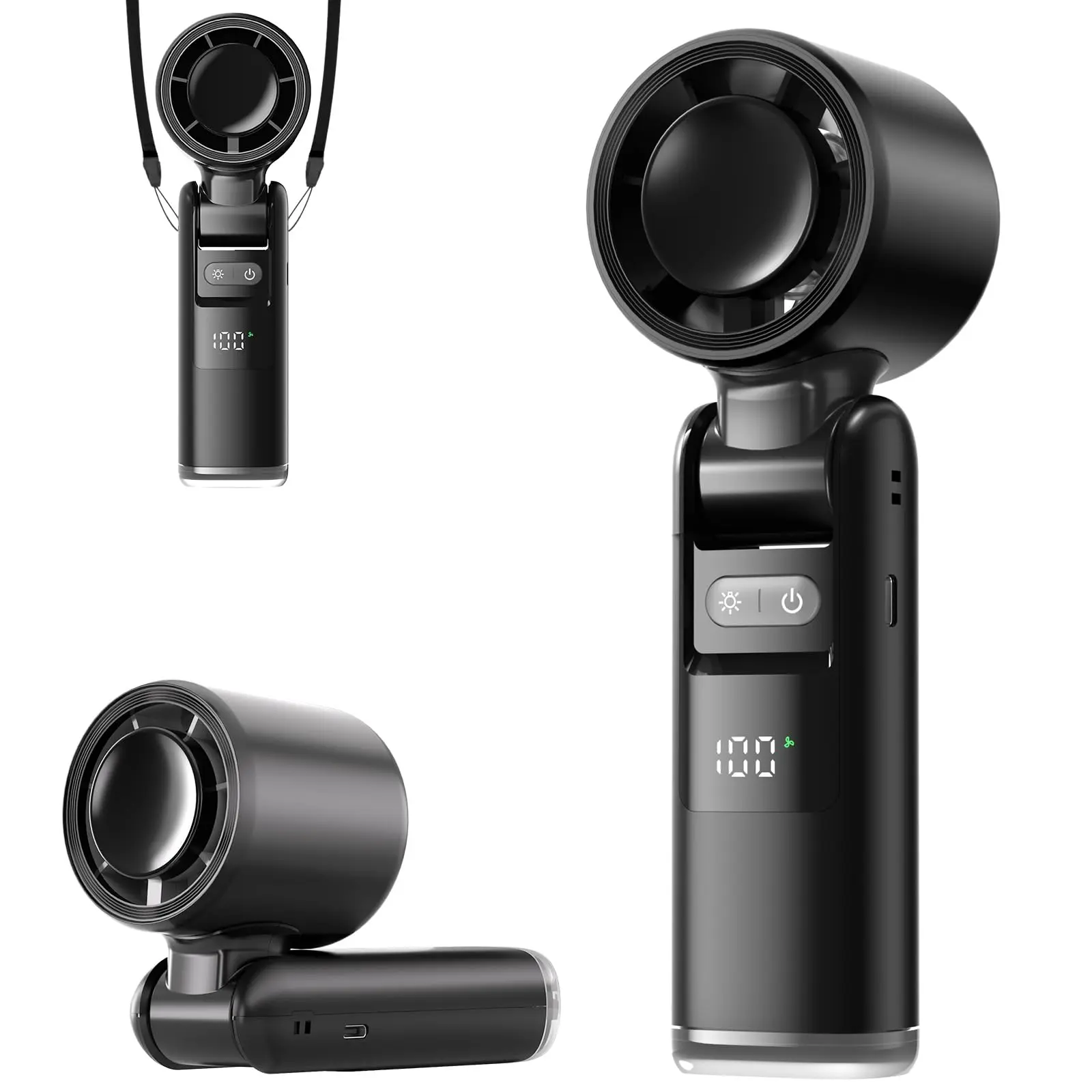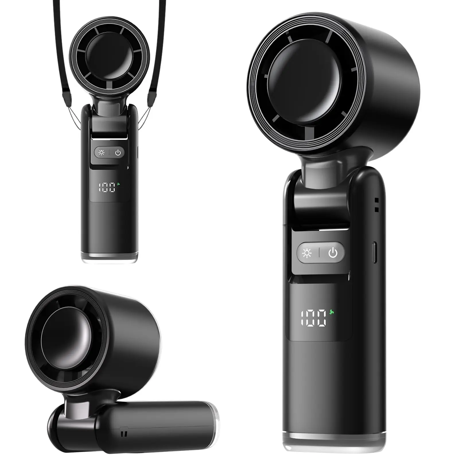 Portable Handheld Turbo Fan, 5 Speeds Ice Cooling Mode, Up to 12H Runtime, 3-in-1 Personal Fan with LED Display & Cooling Plate, Battery Operated Travel Fan for Outdoor, Beach, Gym - Summer Hot Must-Have