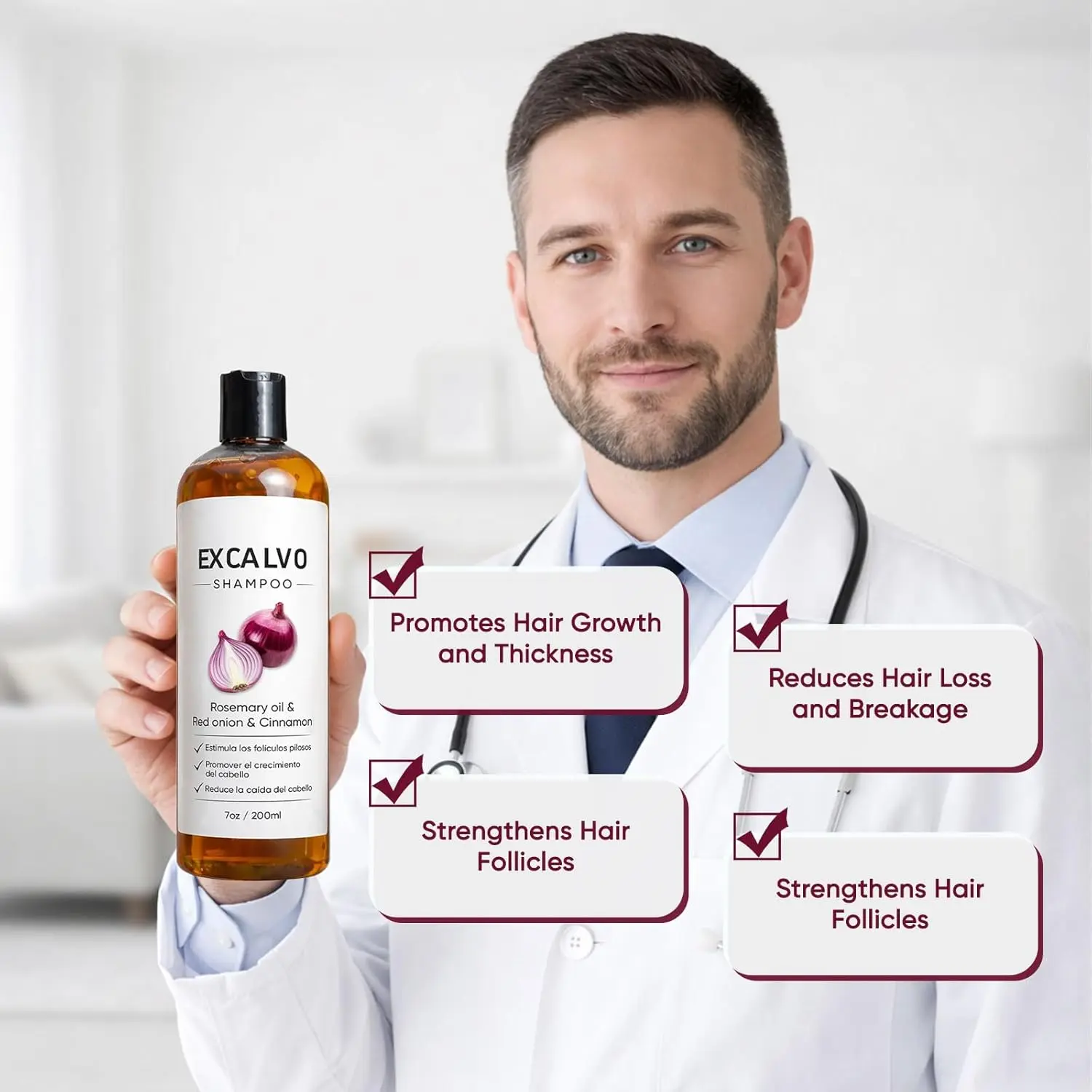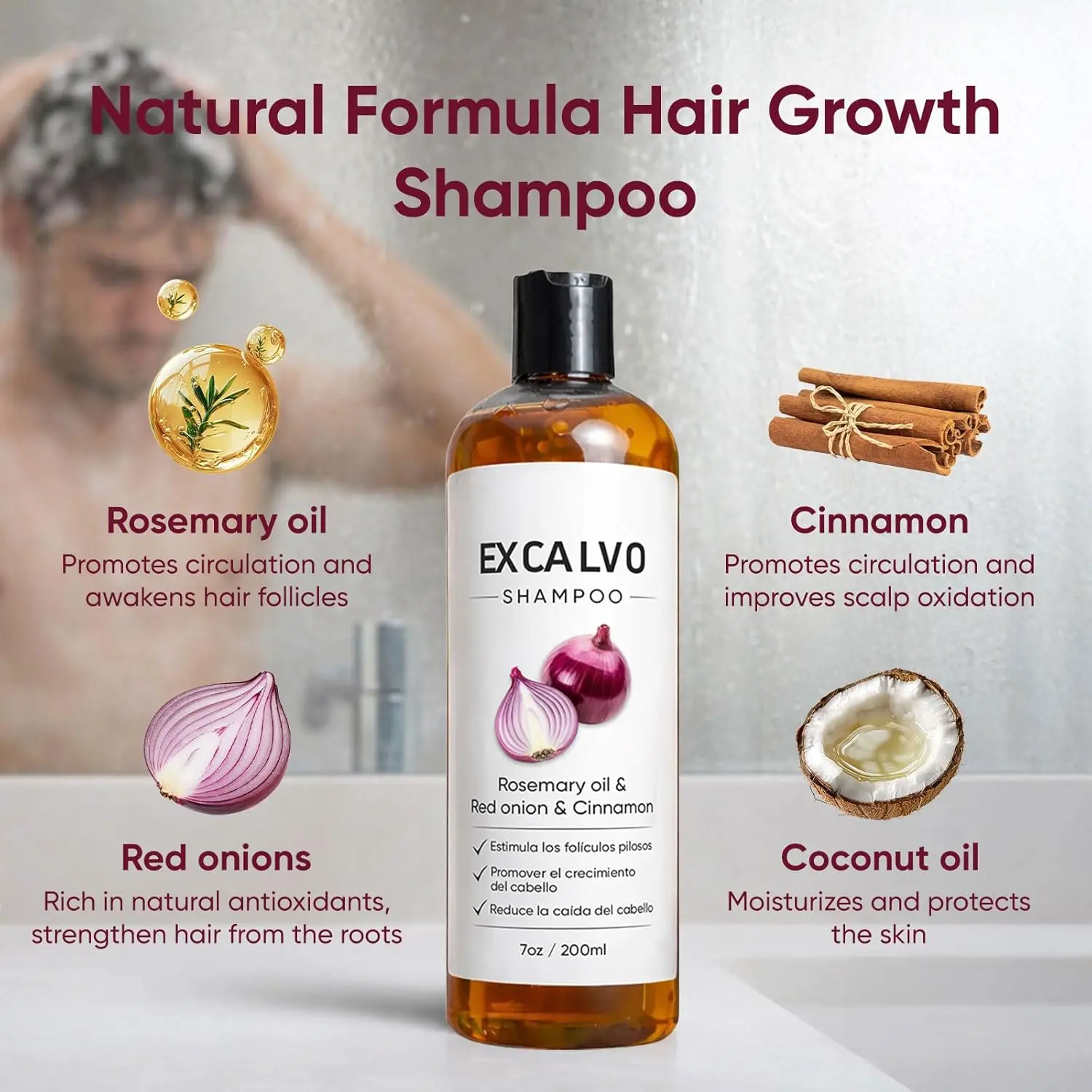 Shampoo, Onion Shampoo for Hair Growth, with Rosemary Oil & Red Onion & Cinnamon Extract, Prevent Hair Loss | Promotes Thicker Fuller Hair, 7oz/200ml