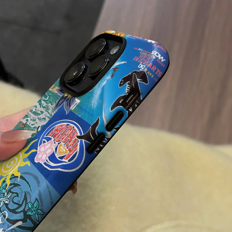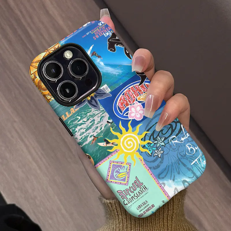 Beach Vibes Phone Case , Y2K Surf Magazine Collage with Bold Colors, Shockproof Rugged Cover Dual Layer Soft TPU Hard Bumper Shell for iPhone 7 8 X XR 11 12 13 14 15 16 17 Pro Max Plus Air