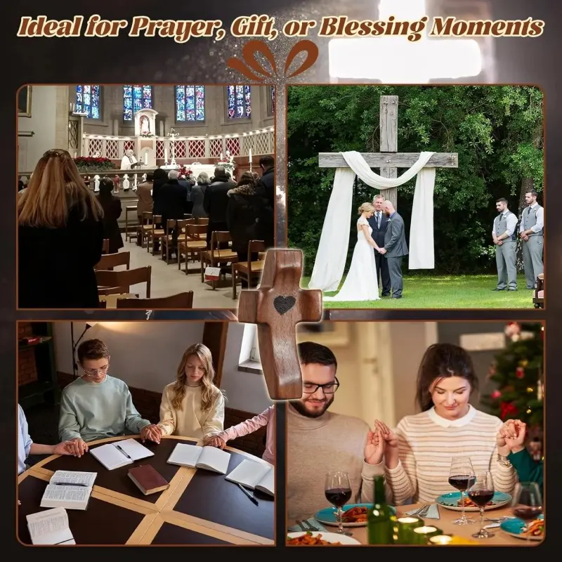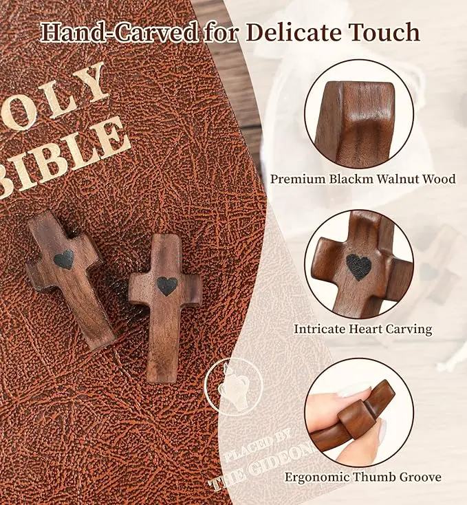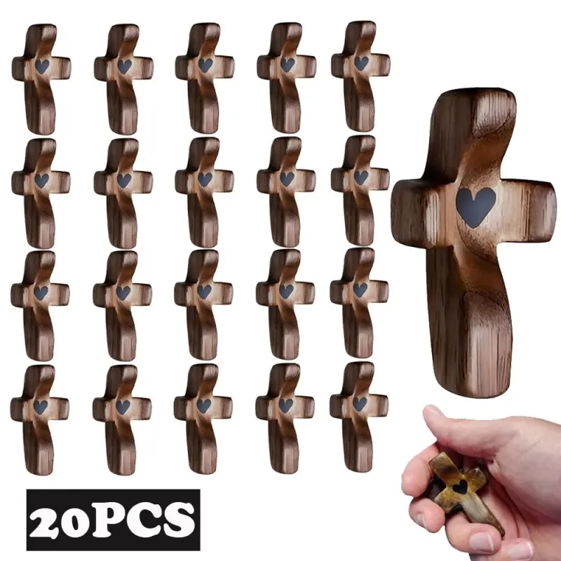 3/6/20Pcs Wooden Cross Bulk Worry Cross Handcrafted Solid Walnut Pocket Cross My Heart Prayer Stress Relief Christian Faith Encouragement Pocket Prayer Gifts for Church Easter Religious Sharing