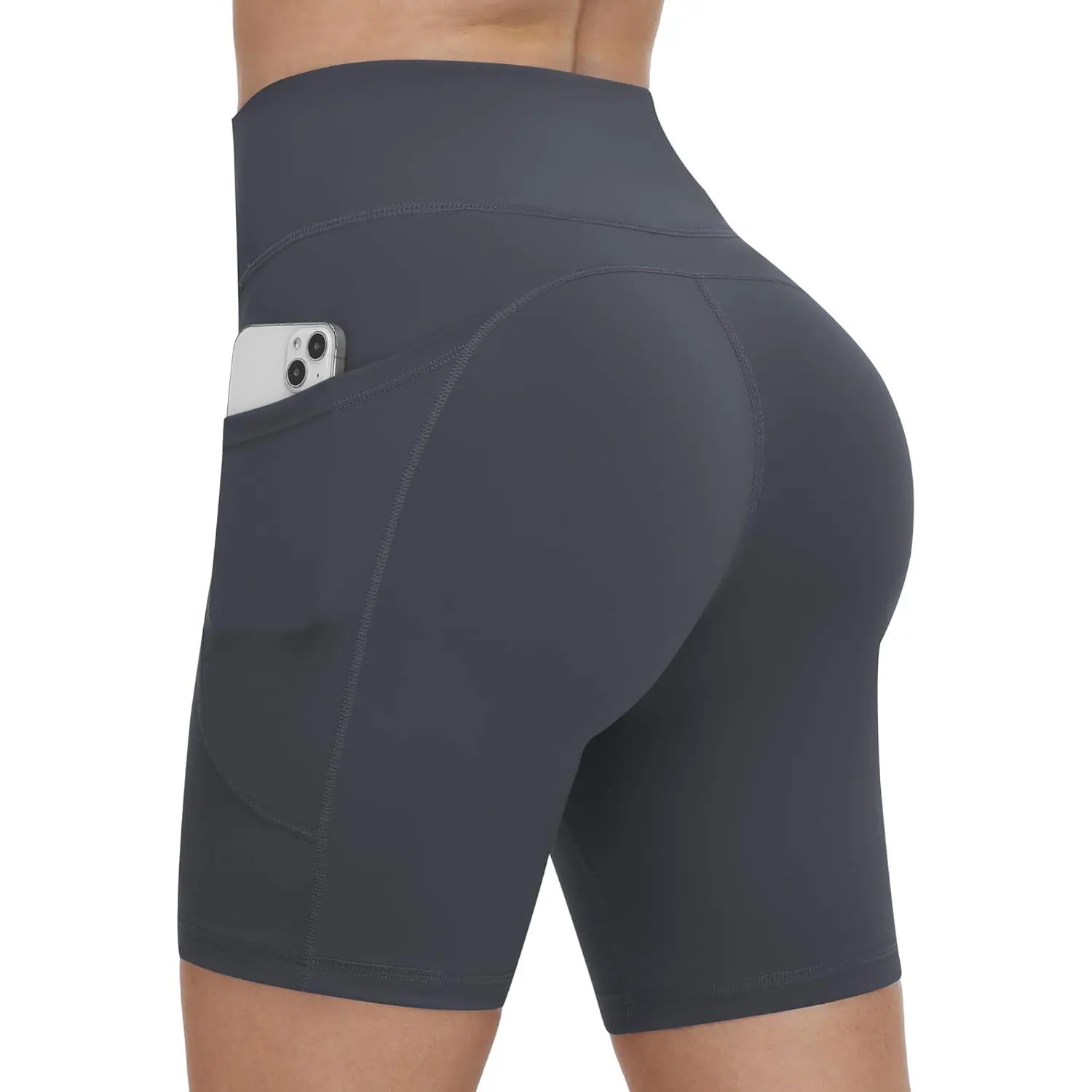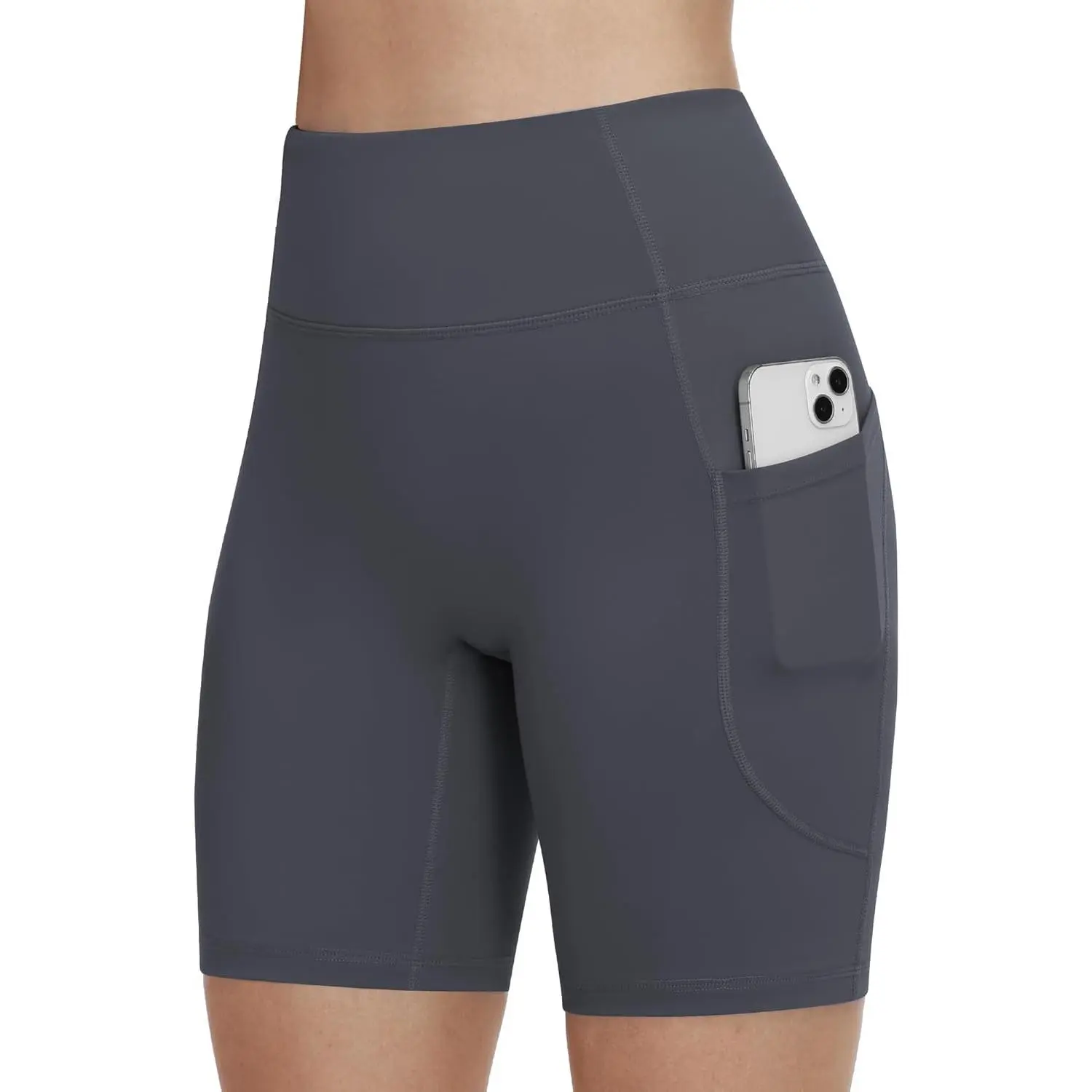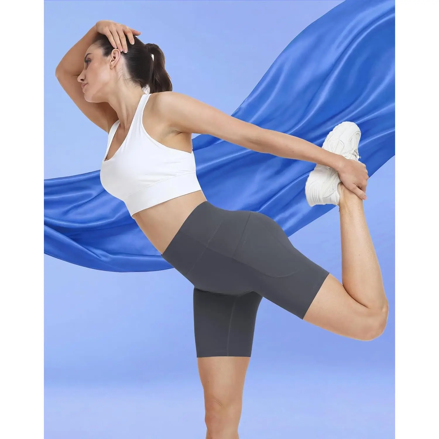 Women's Biker Shorts No Front Seam 4"/6"/8" High Waist Tummy Control Workout Yoga Gym Running Spandex Shorts Pockets