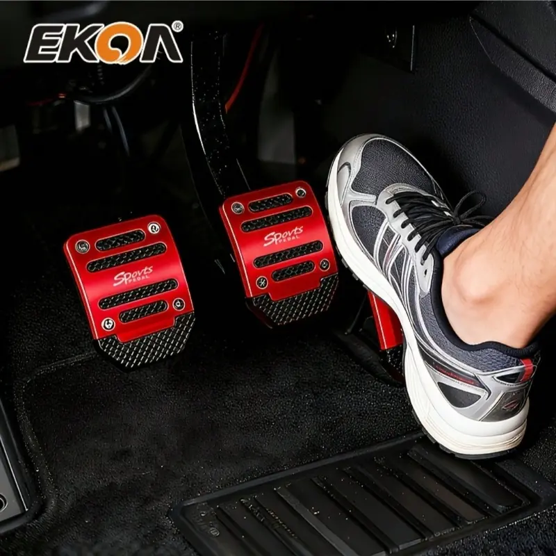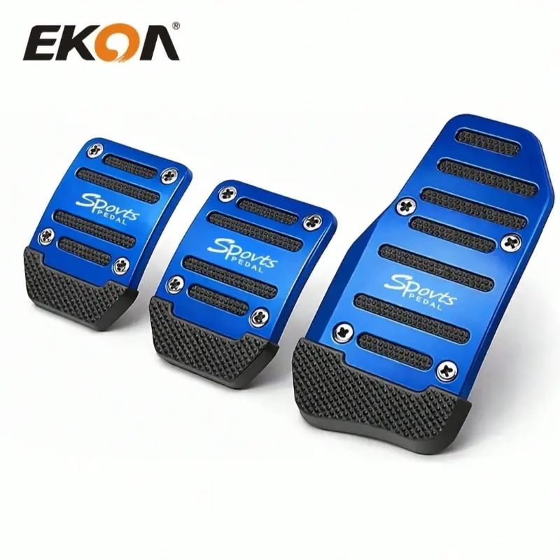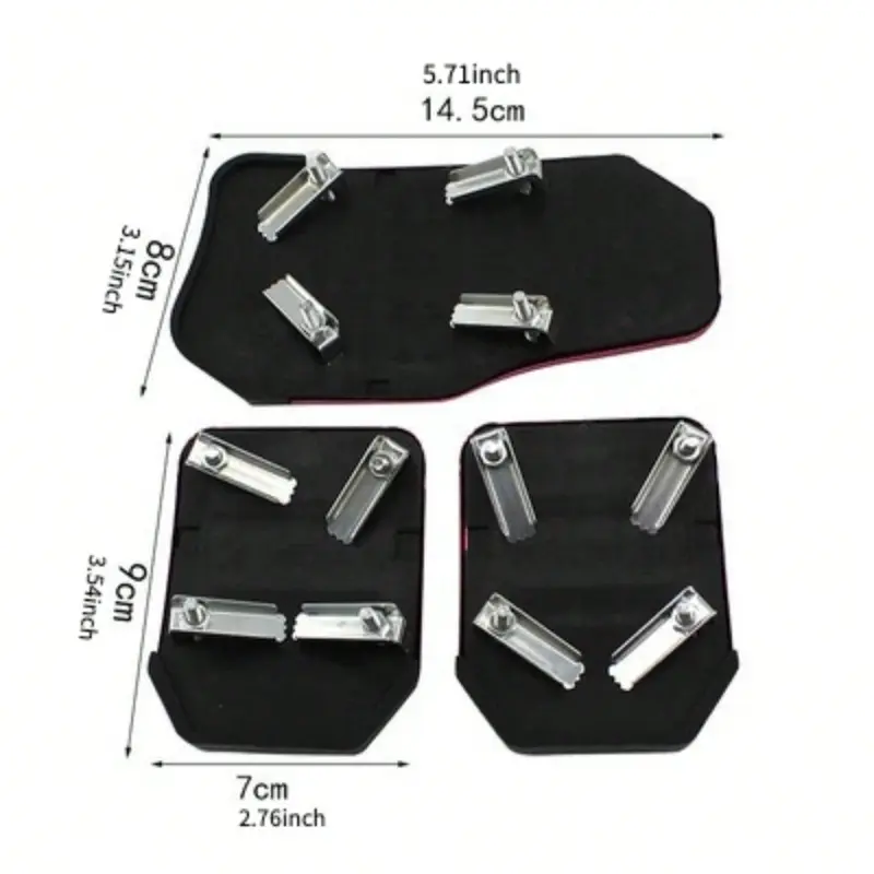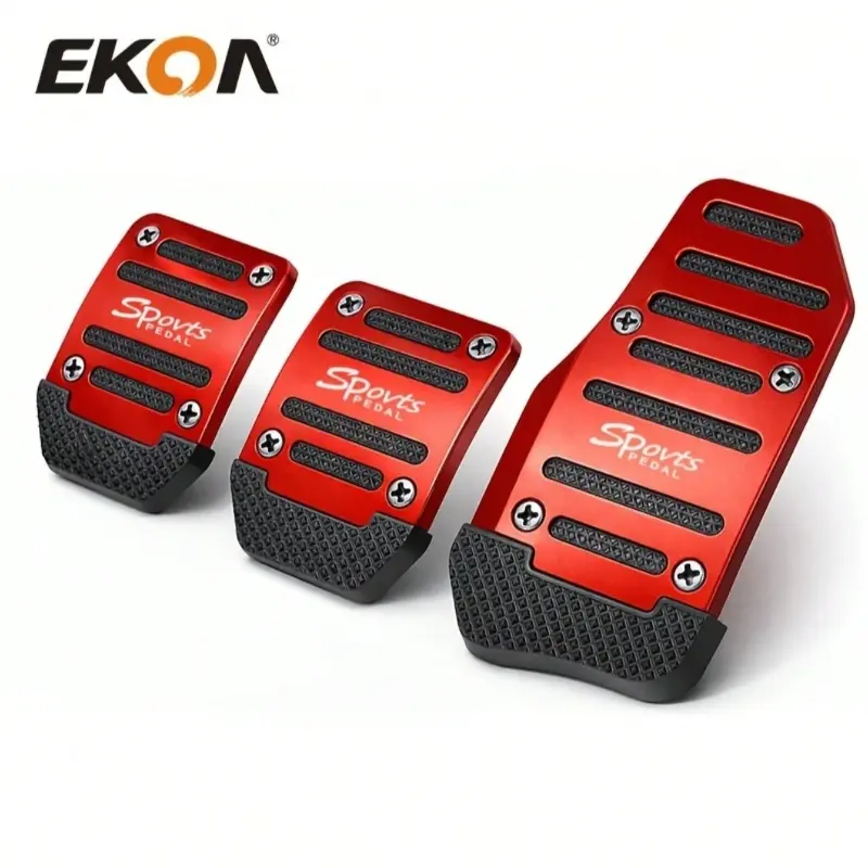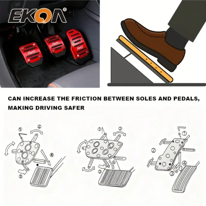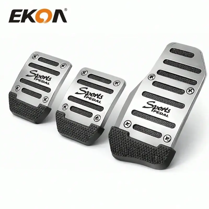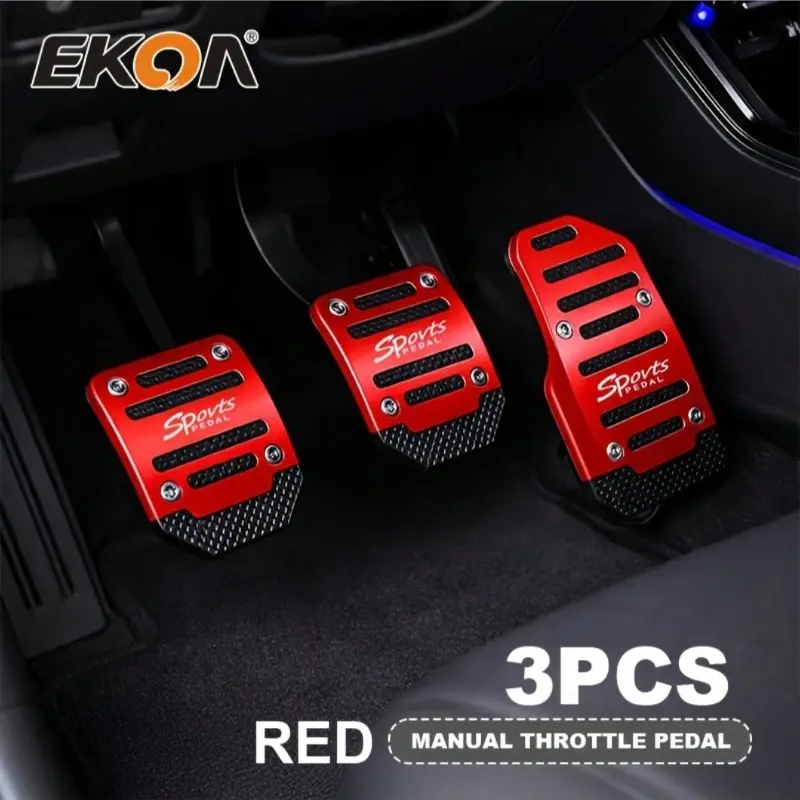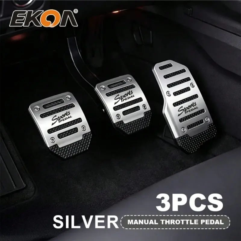 3-piece anti-slip car pedal covers for accelerator, brake, clutch. Ergonomic, durable, lightweight. Compatible with most manual vehicles. Stylish metallic finish, interior upgrade
