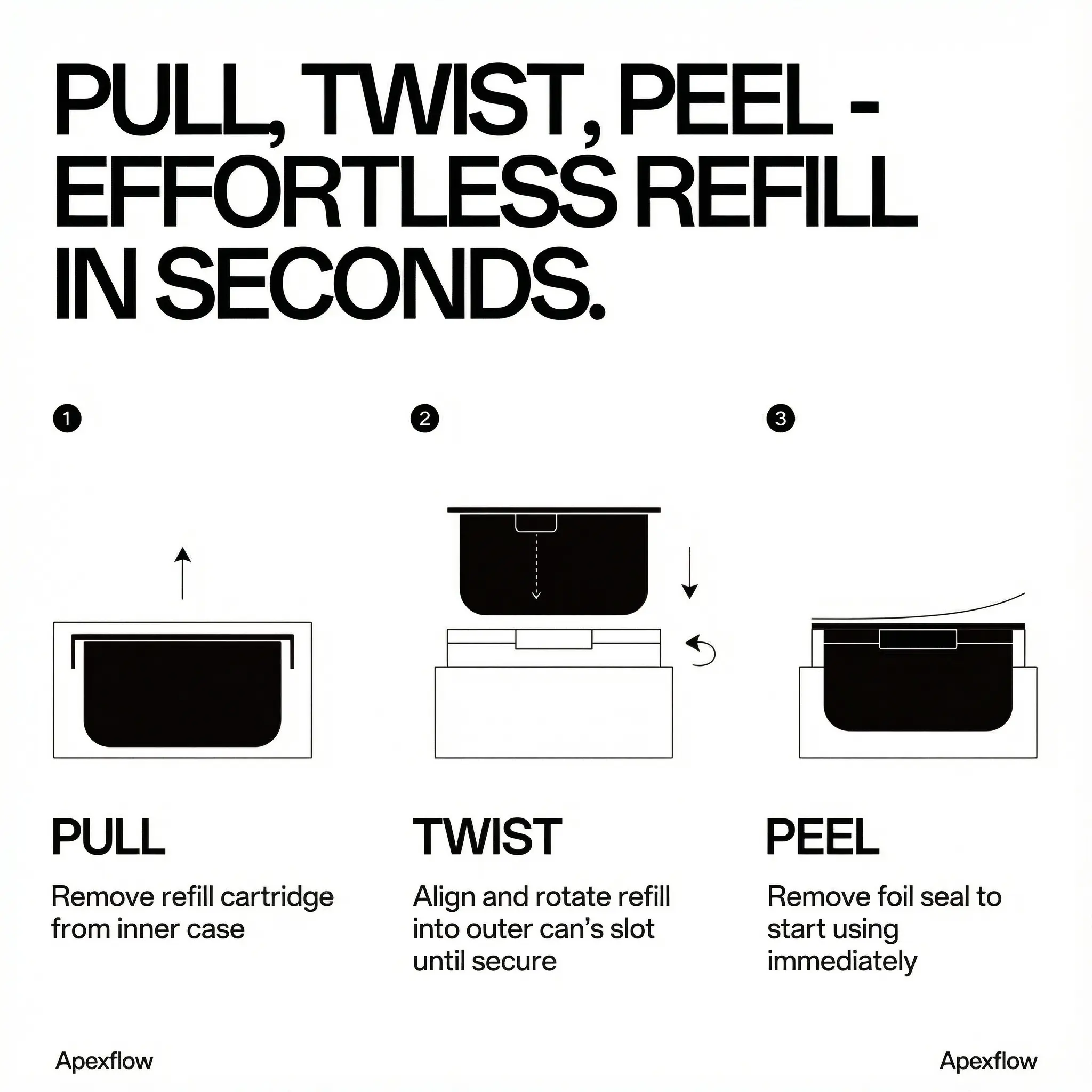 ~Eco-Friendly Premium Design:Boasting sleek minimalist packaging with elegant embossing, it features an innovative replaceable core system. The reusable base box cuts plastic waste, merging sophisticated aesthetics with sustainable grooming.