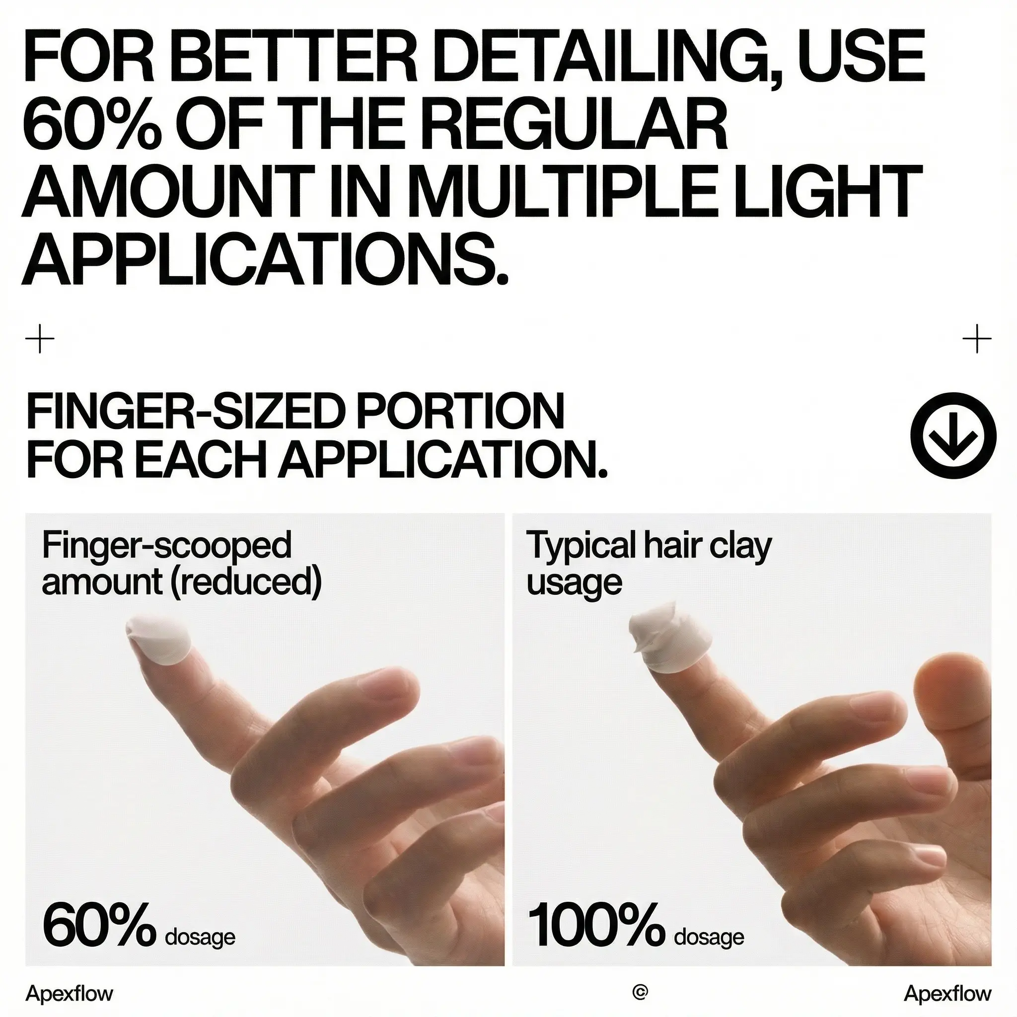 ~Limitless Texture & Flexible Hold:ApexFlow Texture Hair Clay offers adjustable viscosity for all skill levels, delivering strong yet flexible hold and a shine-free matte finish. It locks in natural, textured styles all day without greasiness or clumping.