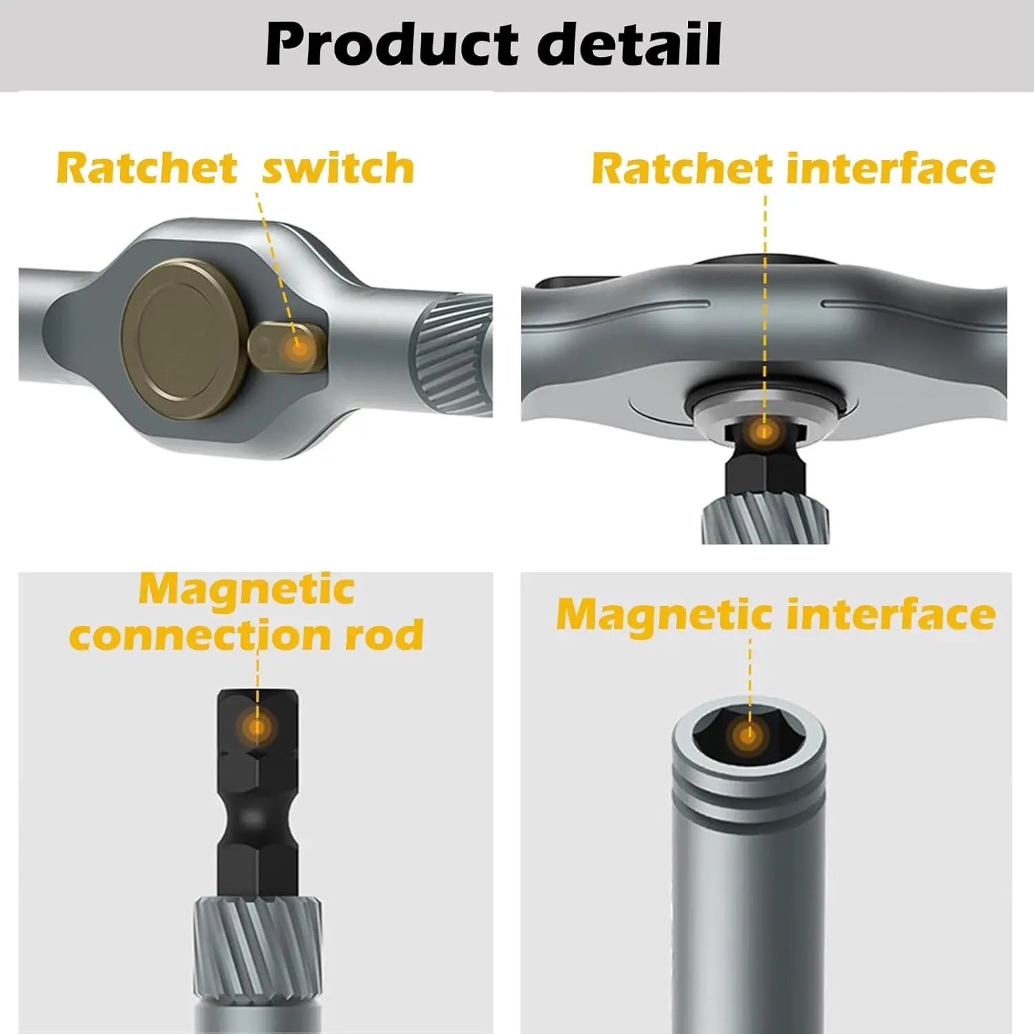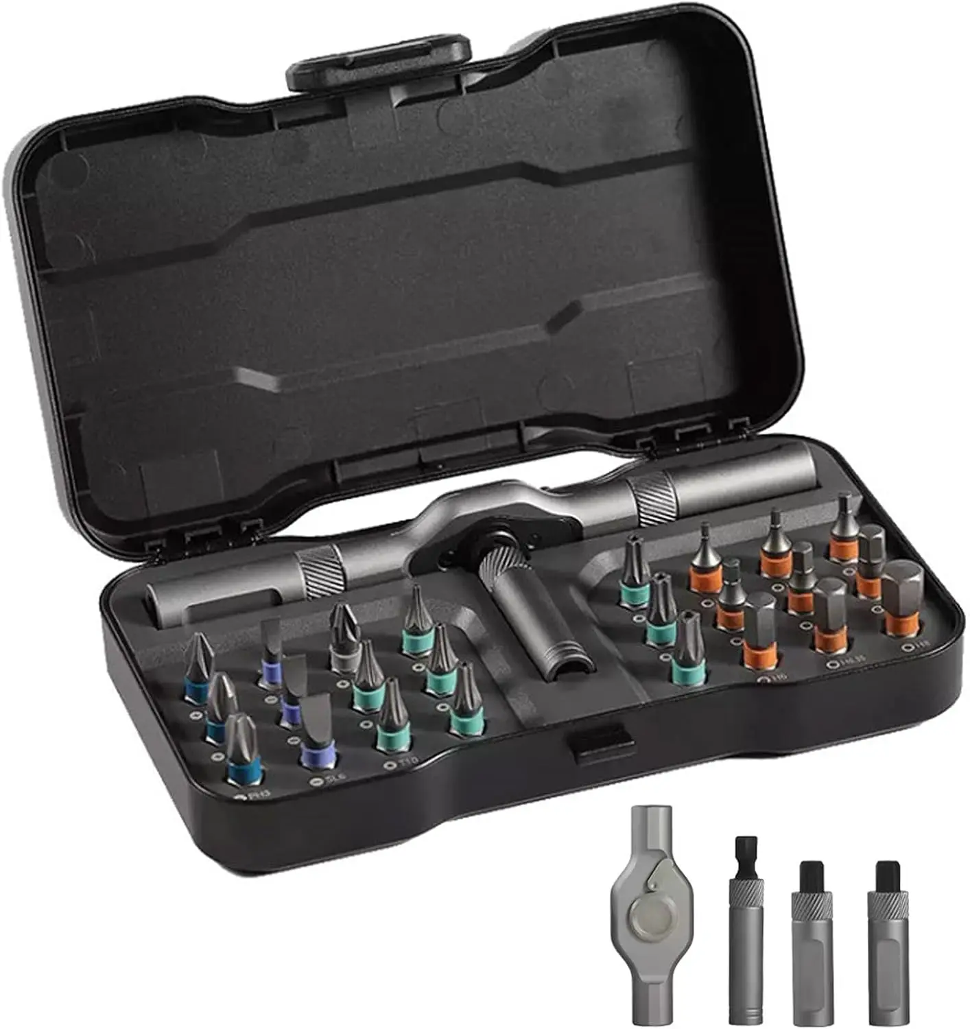 ·Strong Magnetic Detachable Handle: Securely holds bits with a magnetic tip (50N.m torque). The aluminum alloy handle detaches for compact access and features color-coded bit rings for quick identification.