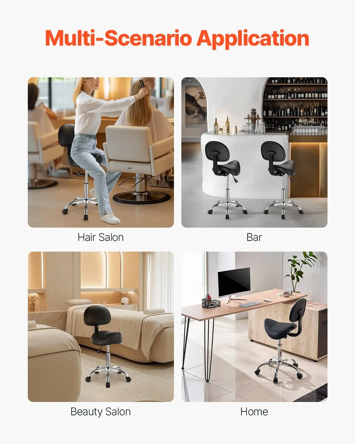 ·Ergonomic Saddle Design: This ergonomically designed rolling stool features a "saddle seat" design, which aligns the legs with the seat surface to relieve pressure on the waist and legs. It helps prevent poor posture caused by spinal tilt and back pain, promotes proper posture, and reduces fatigue from sitting for extended periods.