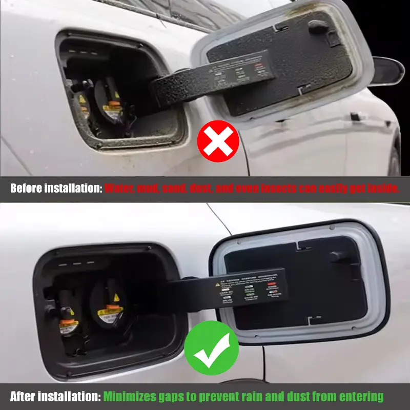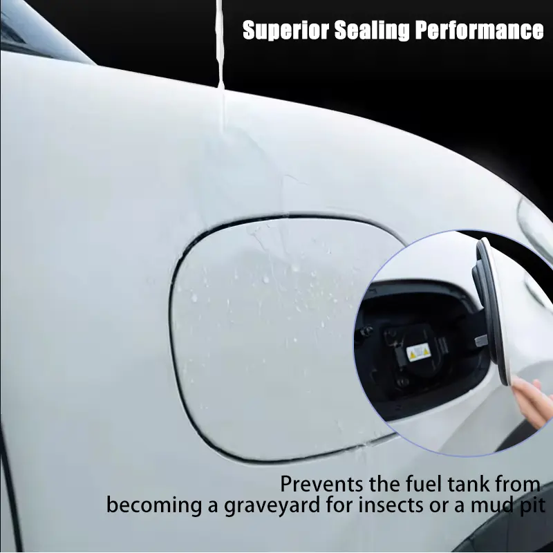 This product fills the gap between the fuel filler door and the vehicle's body. It acts as an external barrier, preventing water infiltration during rain and car washes. It also blocks insects, debris, and dust, protecting the inner paint from micro-scratches. It eliminates vibration noise and paint wear, ensuring a smooth operation.