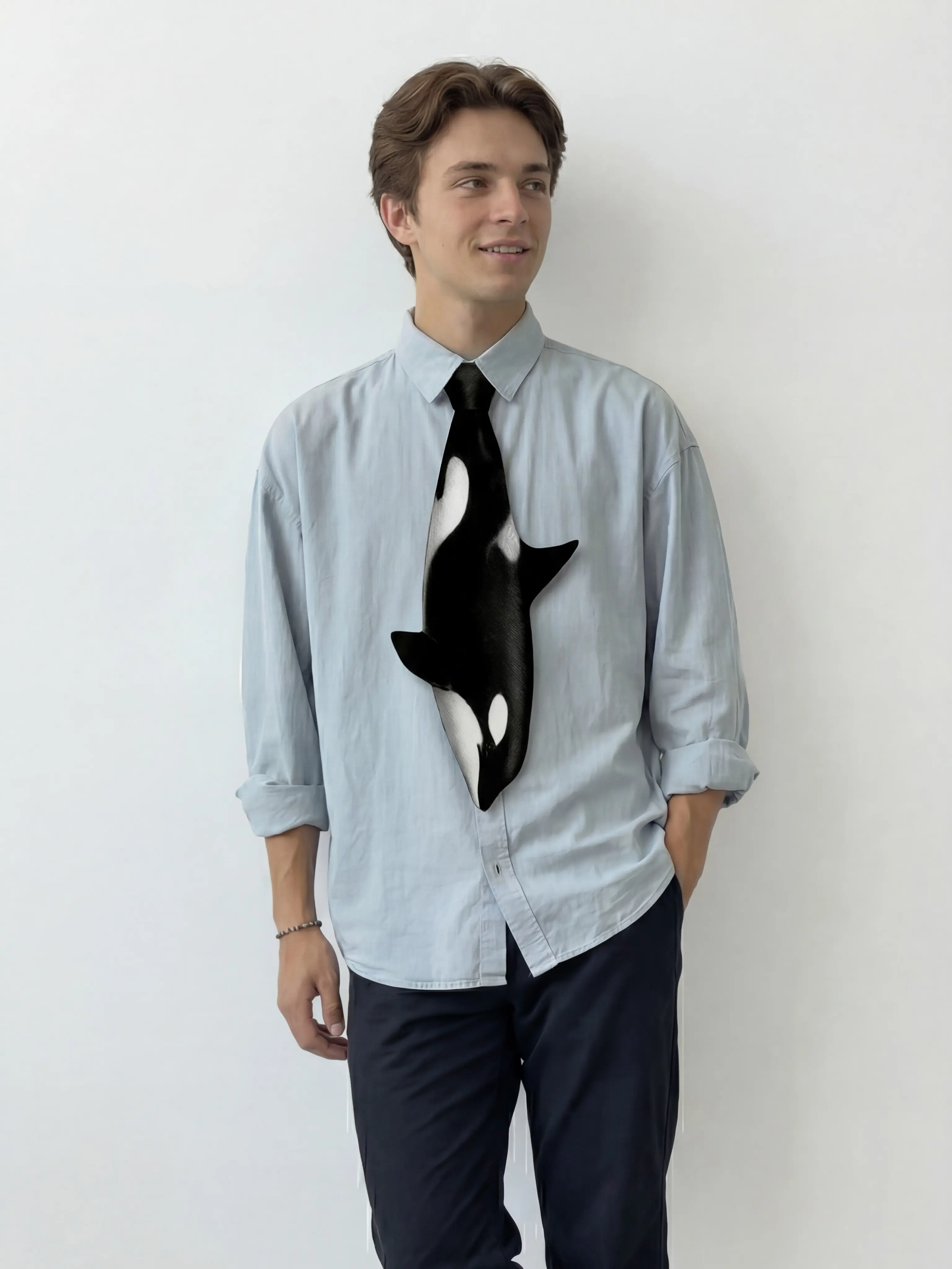 Whether you're channeling main character energy or want to be the most memorable person in the room, this orca tie delivers apex predator drip.