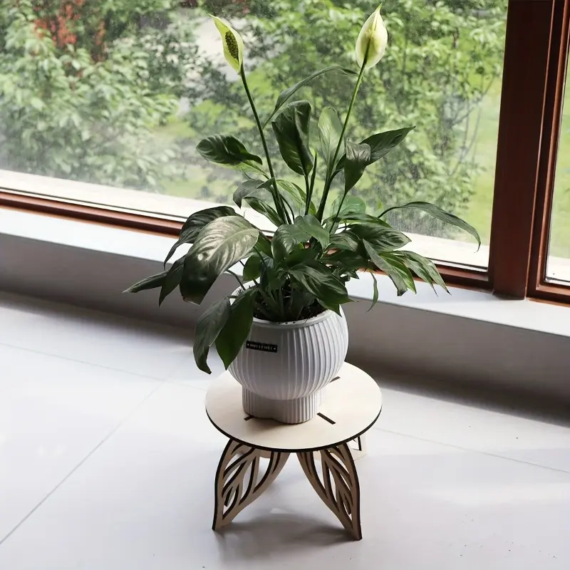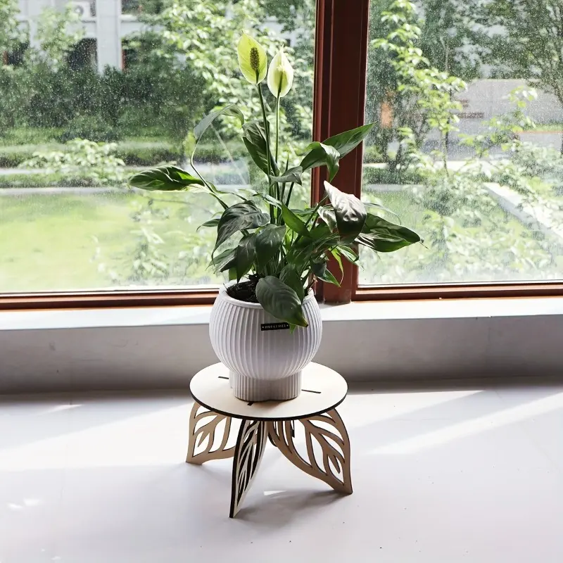 1-piece Plant Stand with Wooden Leaves | Sturdy Frame Design | Indoor Plant Stand | Modern Decor | Decorative plant stand perfect for indoor plants, ideal for home or office decor,
