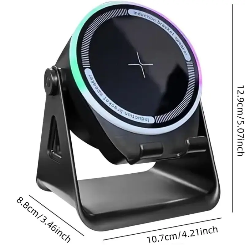 Wireless Induction Speaker Bluetooth-compatible 5-In-1, USB Emergency Charger, RGB Light, 360° Rotating Stand, Portable Desktop, Home, Outdoor, Travel Gift