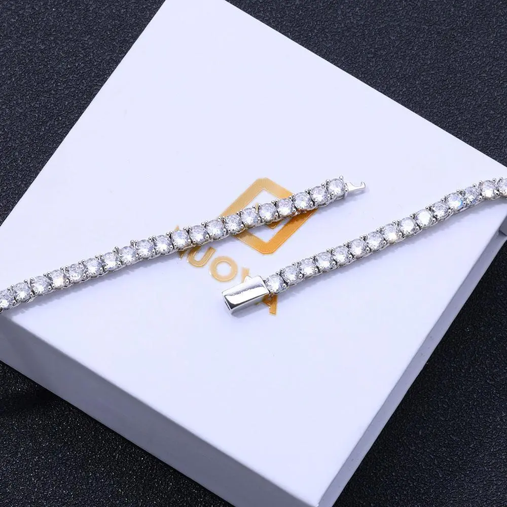 3mm 4mm 5mm Iced Out VVS Moissanite Diamond Tennis Chain 925 Sterling Silver Customized Fine Jewelry Wholesale Prices