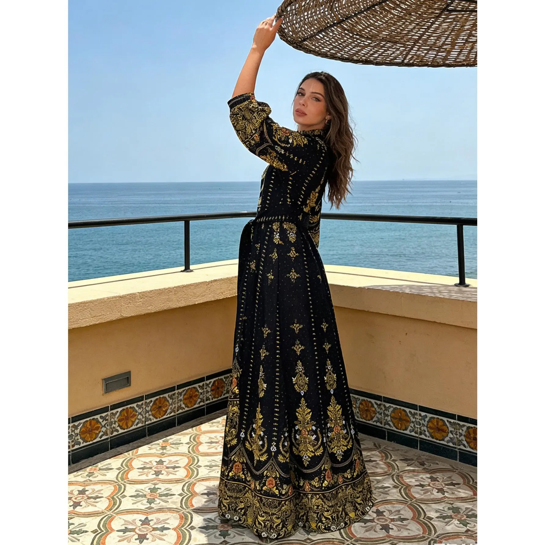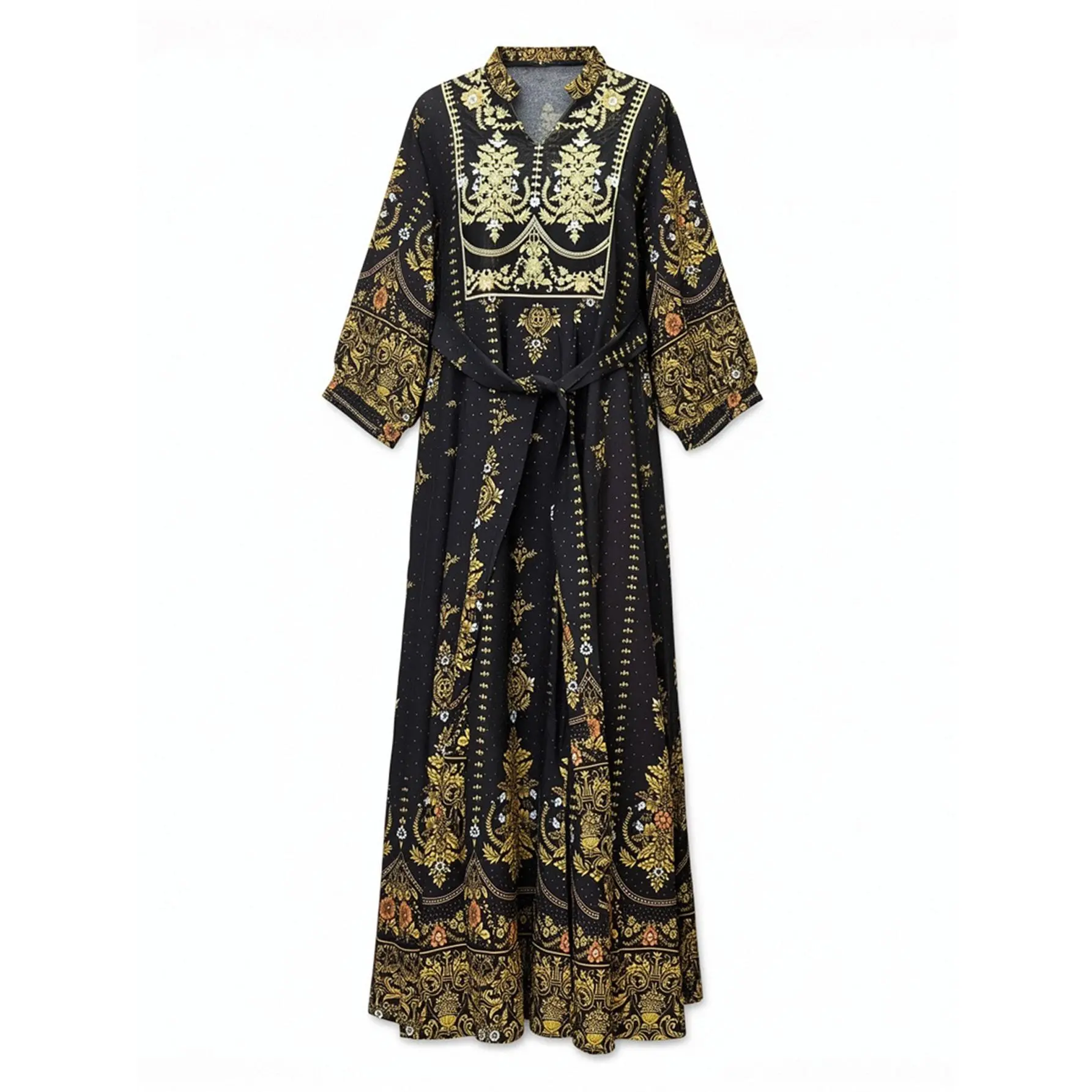 ·Design: Ornate ethnic/baroque motifs, elegant long sleeves, and an adjustable waist tie to create a perfect silhouette.