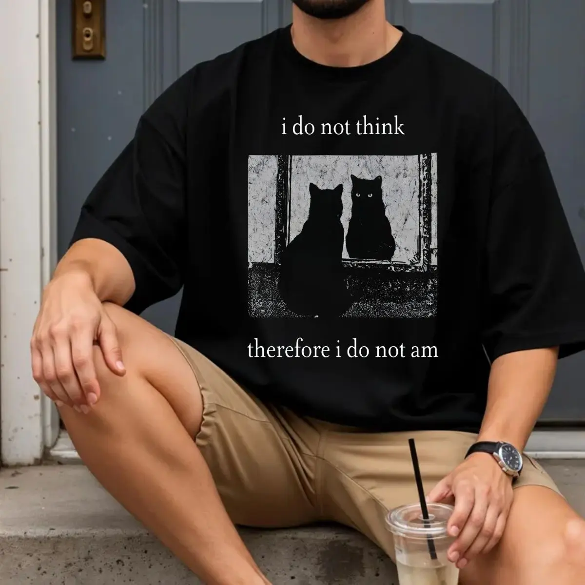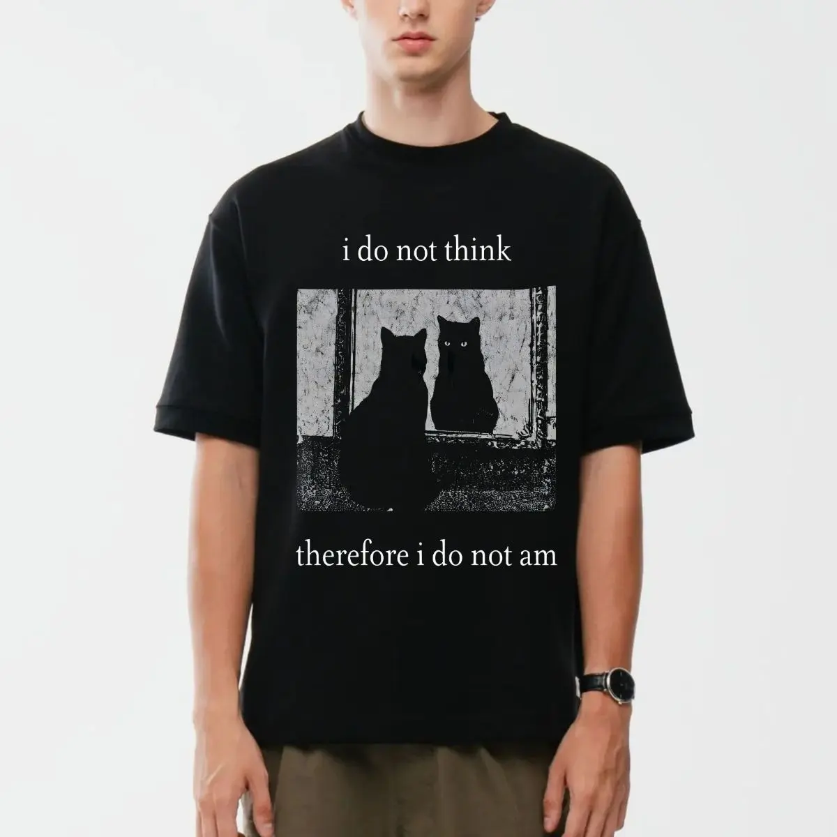 I Do Not Think Therefore I Do Not Exist Cat Shirt – Funny Grunge Cat T-Shirt, Vintage Retro Tee, Goth Emo Punk Shirt, Witchy Aesthetic Top