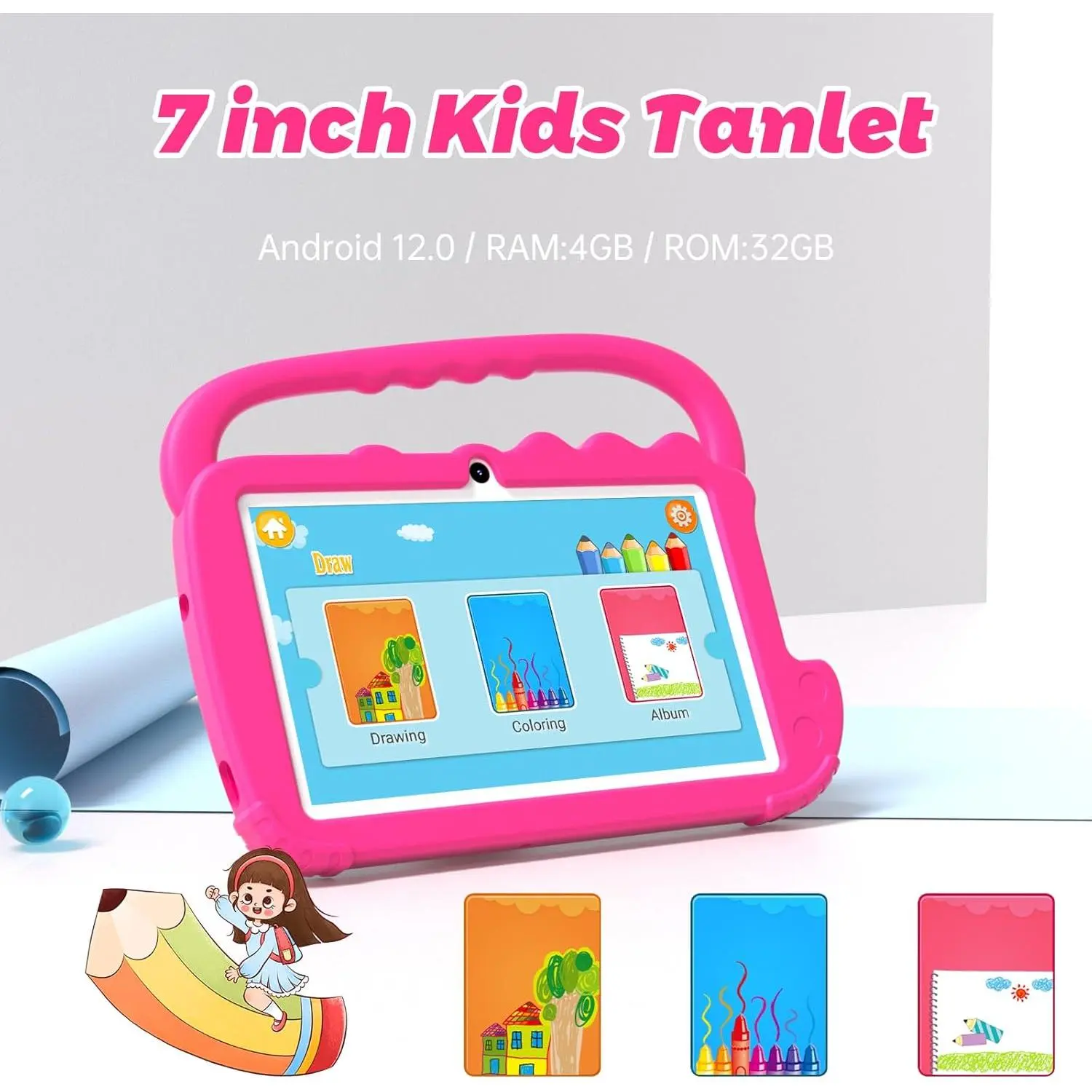 [Eye Protection Screen]7 inch tablet for kids with quality 1024x600 IPS HD display screen. clear and bright screen provides outstanding visual experience when kids reading and watching the videos. automatic brightness adjustment can better protect your eyes, Reduce eye fatigue.