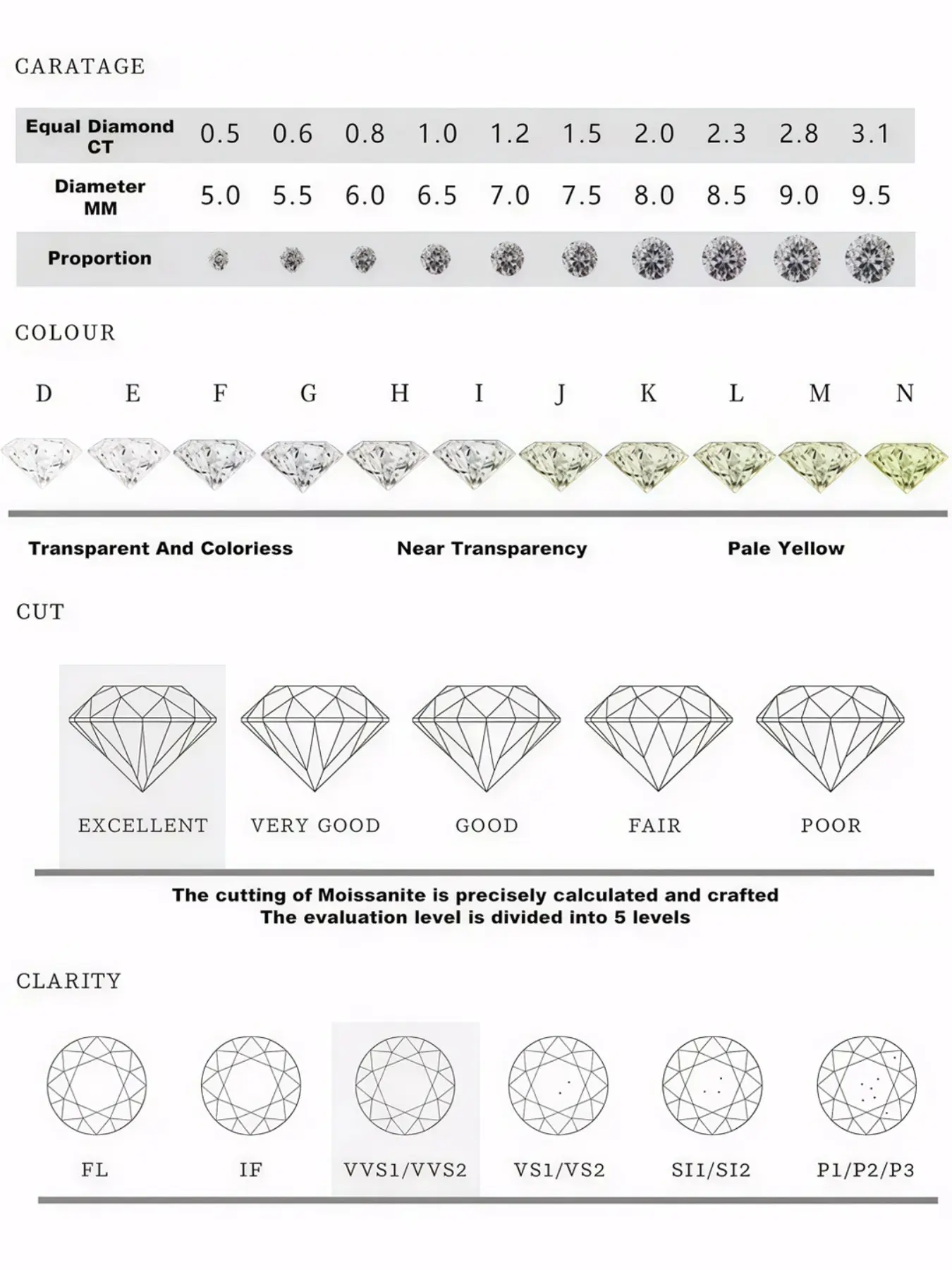 【Moissanite Stone】: Set with one 1-carat moissanite, two 0.5-carat moissanite stones, and two 0.3-carat moissanite stones., adding a touch of elegance to any outfit.